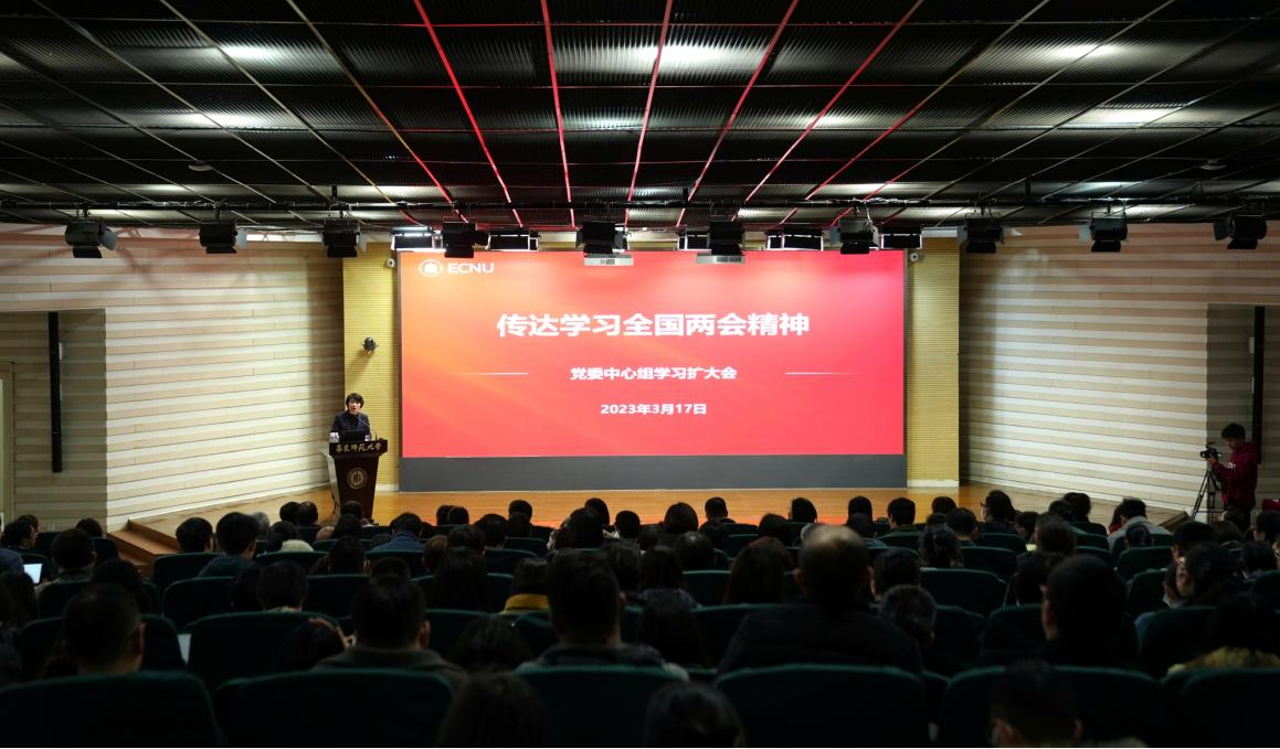 开班仪式后,全体学员前往闵行校区学生之家C区报告厅列席了校党委中心组学习扩大会,学习2023年全国两会精神。会上,全国人大代表、校党委书记梅兵主持学习并分享参会感受,全国政协委员、副校长戴立益,全国政协委员、校长助理吴瑞君,全国政协委员、国家教育宏观政策研究院副院长张文明分享履职体会。