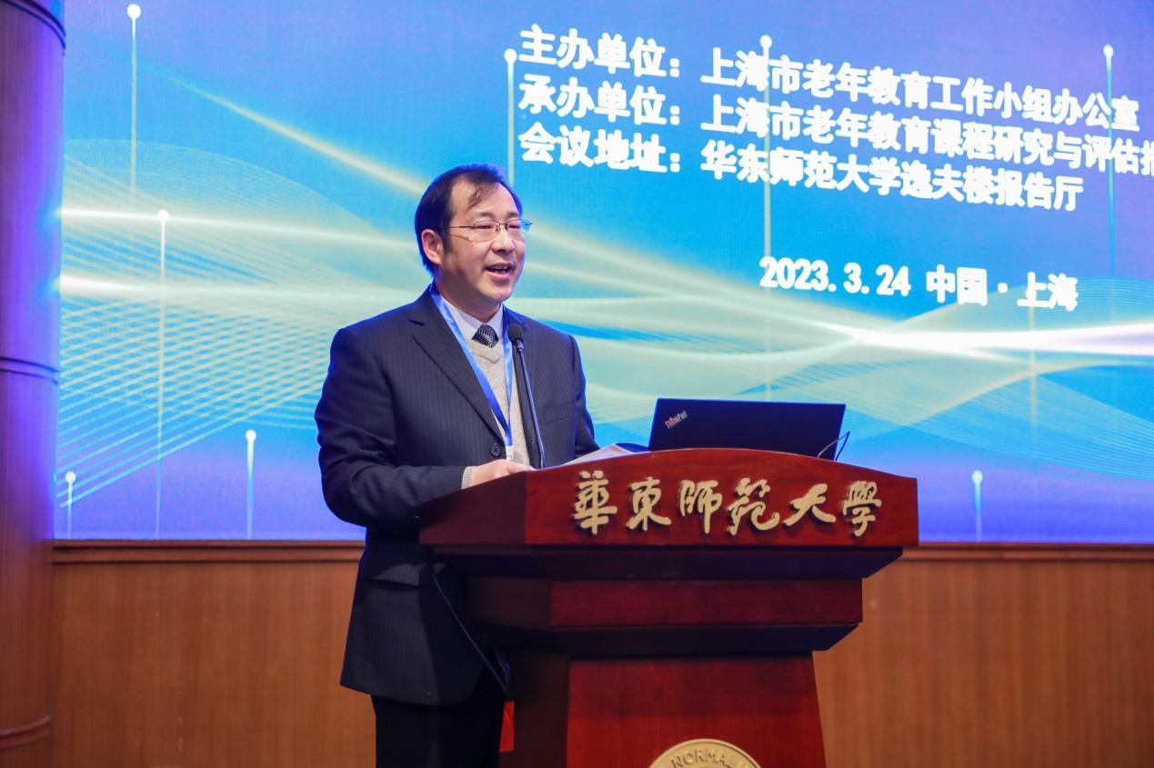 开幕式后,上海市老年教育课程研究与评估指导中心副主任李家成主持上午场论坛,上海市教委副主任王浩出席并作主旨报告。