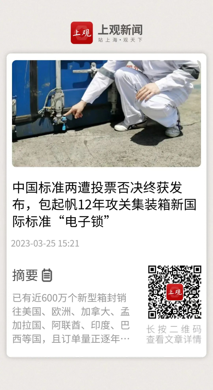 作为用户,能欣喜地看到集装箱NFC和二维码箱封已经实现量产并迅速在全球范围内使用,这有助于依托数字化手段推动行业发展,助力集装箱标准化。