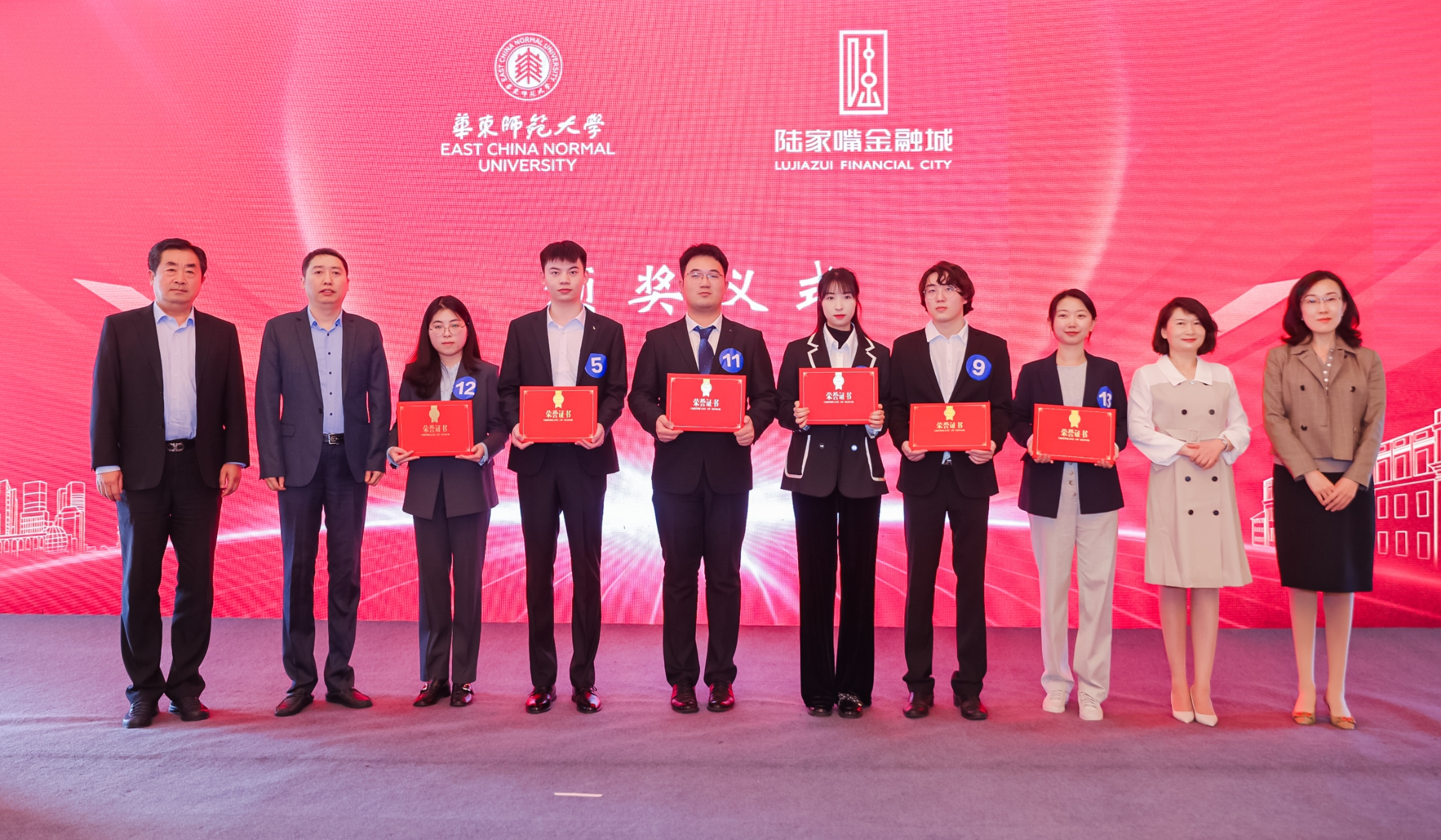 华东师大党委学生(研究生)工作部部长、学生(研究生)工作处处长、选调生工作办公室主任赵健,学生职业发展中心主任刘继亮,经济与管理学部副主任兼经管专业学位教育中心主任蓝发钦,中心职业发展与校企合作部主任李真,执行主任董玲燕,中国(上海)自由贸易试验区管理委员会陆家嘴管理局党组书记、局长肖健, 浦东新区区委组织部副部长、区人才办副主任戚玉霞,浦东新区人力资源和社会保障局党组成员、副局长黄晖,浦东新区妇女联合会党组成员、副主席陈露,陆家嘴管理局党群处处长何建木,上海国际金融人才服务中心主任严骏,浦东新区妇女联合会发展部部长吴兰,中国金融信息中心总裁张凤鸣、中国(上海)自由贸易试验区管理委员会陆家嘴管理局人才金港主任徐德洁等出席本次大赛。