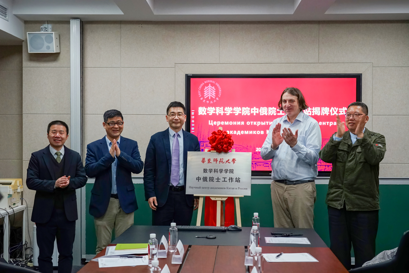 4月4日上午,华东师大数学科学学院“中俄院士工作站”揭牌仪式在闵行校区数学楼举行。莫斯科国立大学伊利英·亚历山大院士、布达克·鲍里斯副教授、马伊苏拉德泽·阿奇尔副教授,华东师大副校长顾红亮,国际合作与交流处处长杜震宇、数学科学学院院长吕长虹等相关部门、院系负责人,教师代表倪明康教授等出席仪式。 开幕式由数学科学学院副院长罗栗主持。