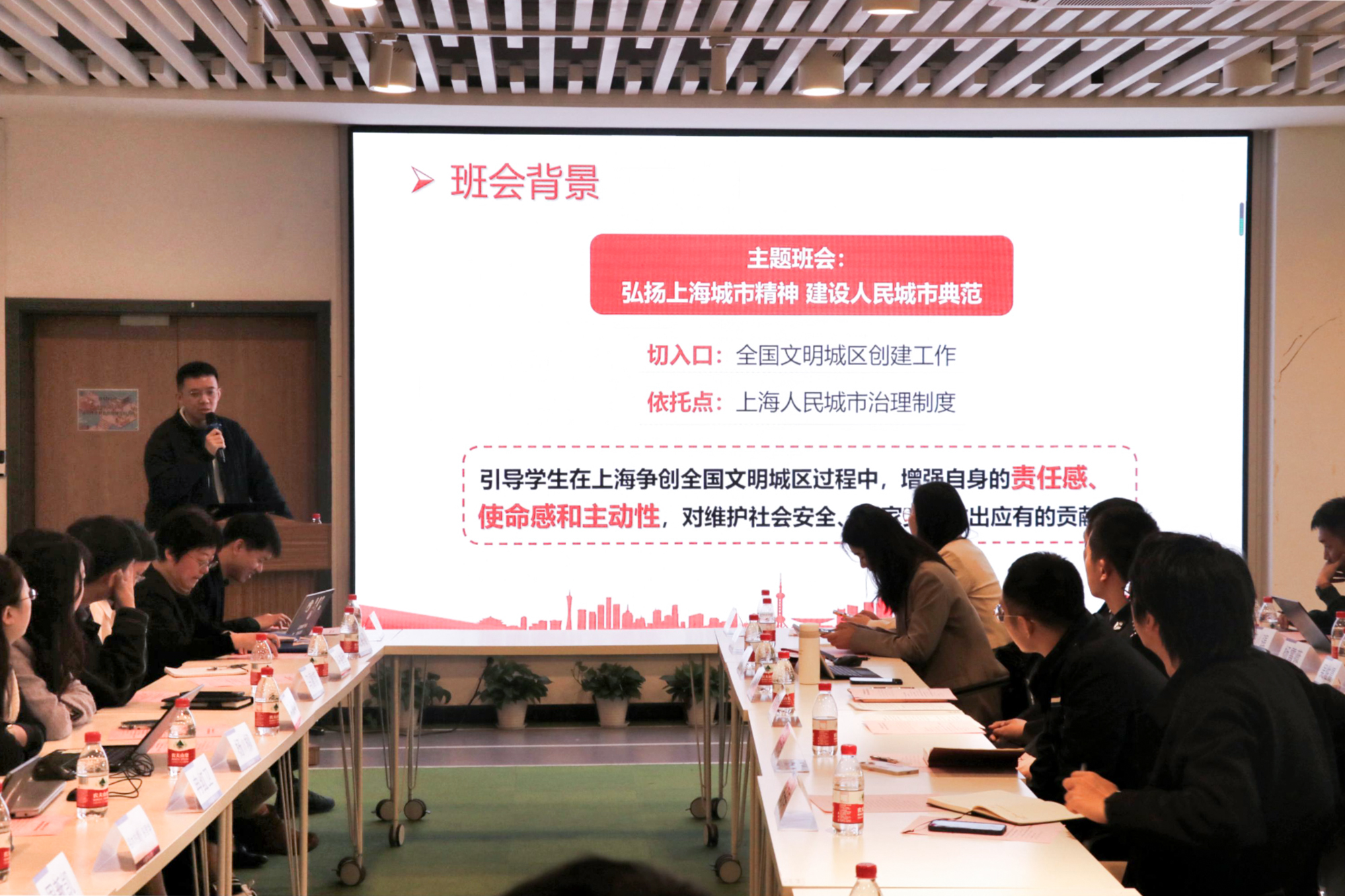 东华大学旭日工商管理学院辅导员沈嘉斌以《弘扬上海城市精神,建设人民城市典范》为题设计了总体国家安全观视野下的超大城市社会治理主题班会。为在班会中实现“思政小课堂”与“社会大课堂”的有机融合,他采用沉浸课堂、案例教学的创新方式,选取“三段故事”,由具象到抽象,由认知到情感,由情感到行动,在学生心中留痕迹、解疑惑、聚力量,帮助学生在上海争创全国文明城区的过程中增强自身的责任感、使命感和主动性。