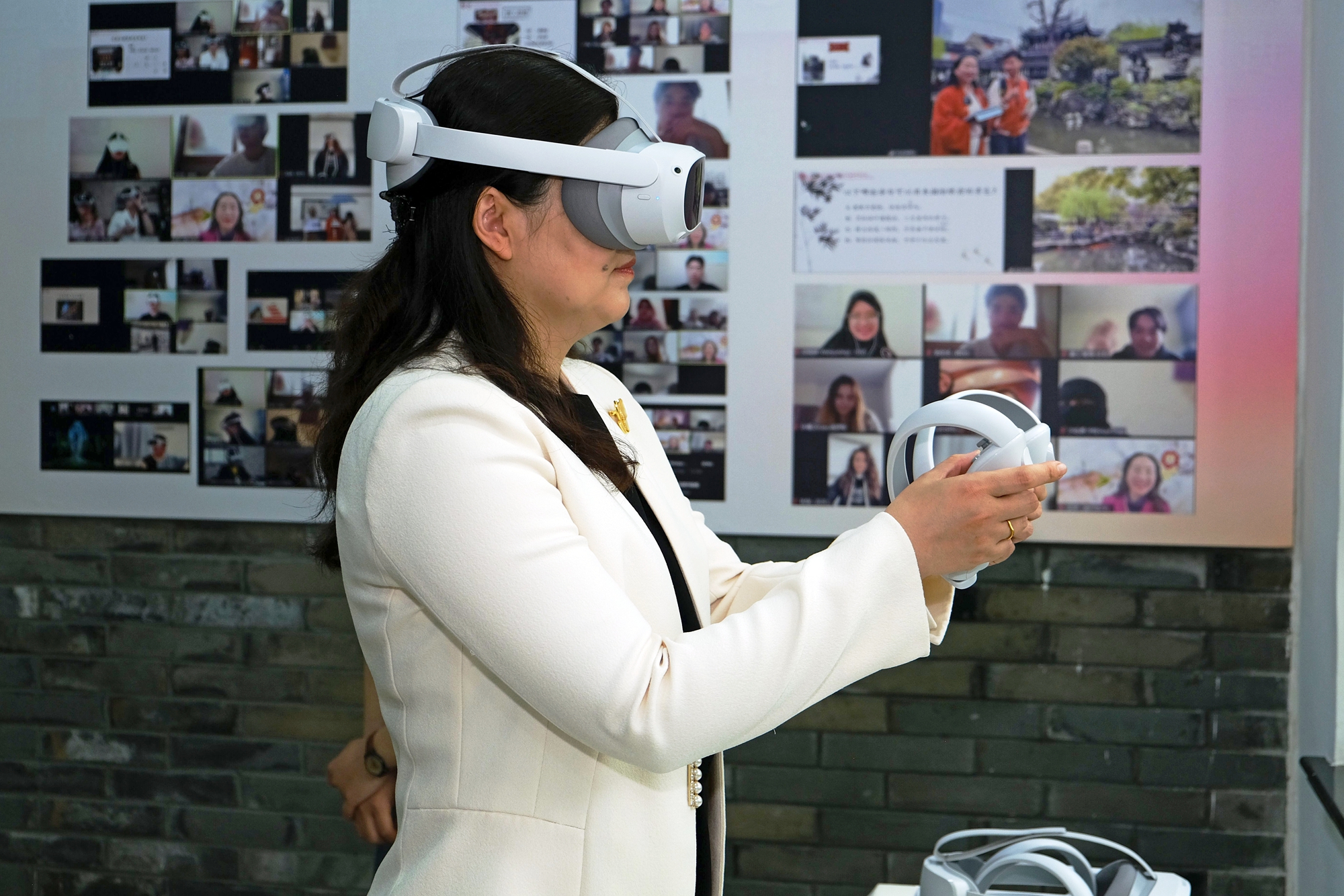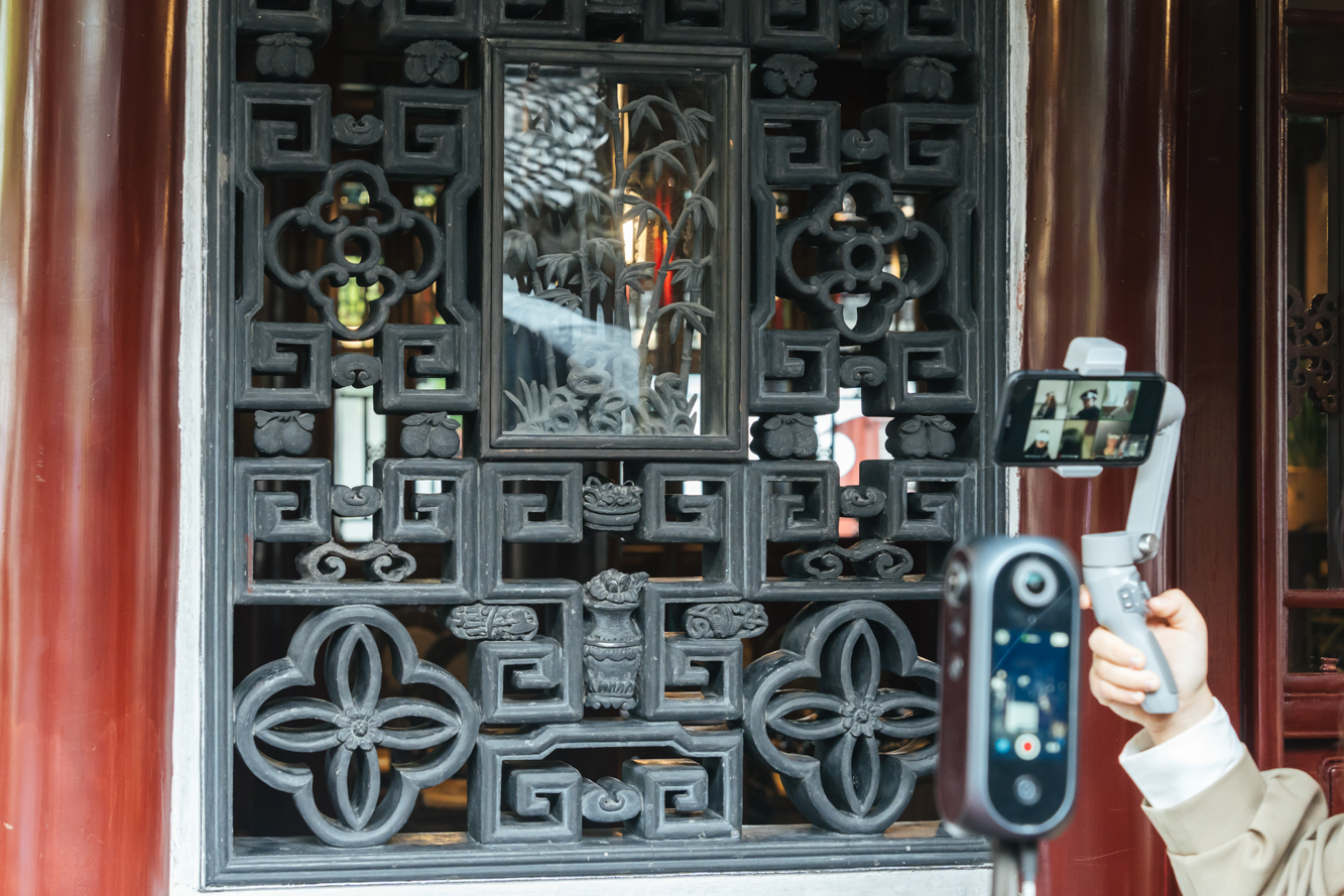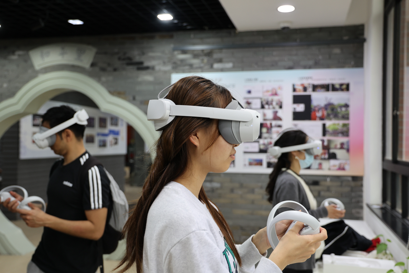 学员通过VR观察豫园的窗花