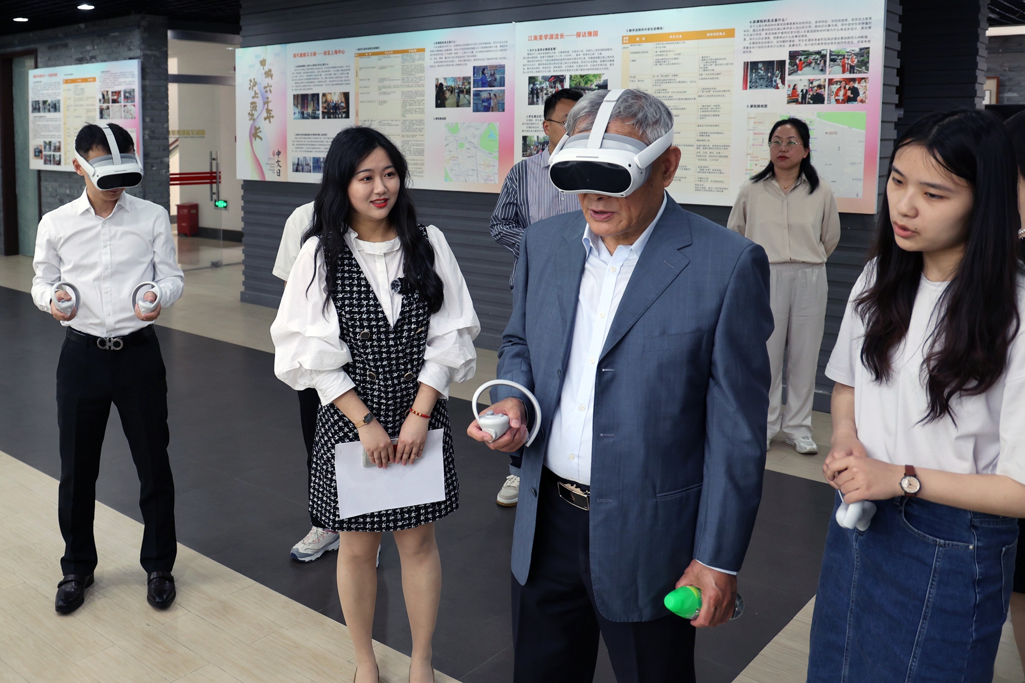 专家佩戴VR眼镜体验学生端视角下的真实课堂