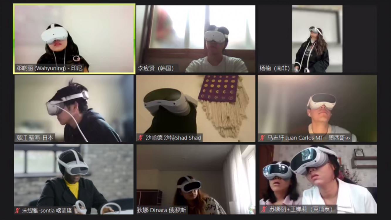 世界各地学员佩戴VR眼镜上课