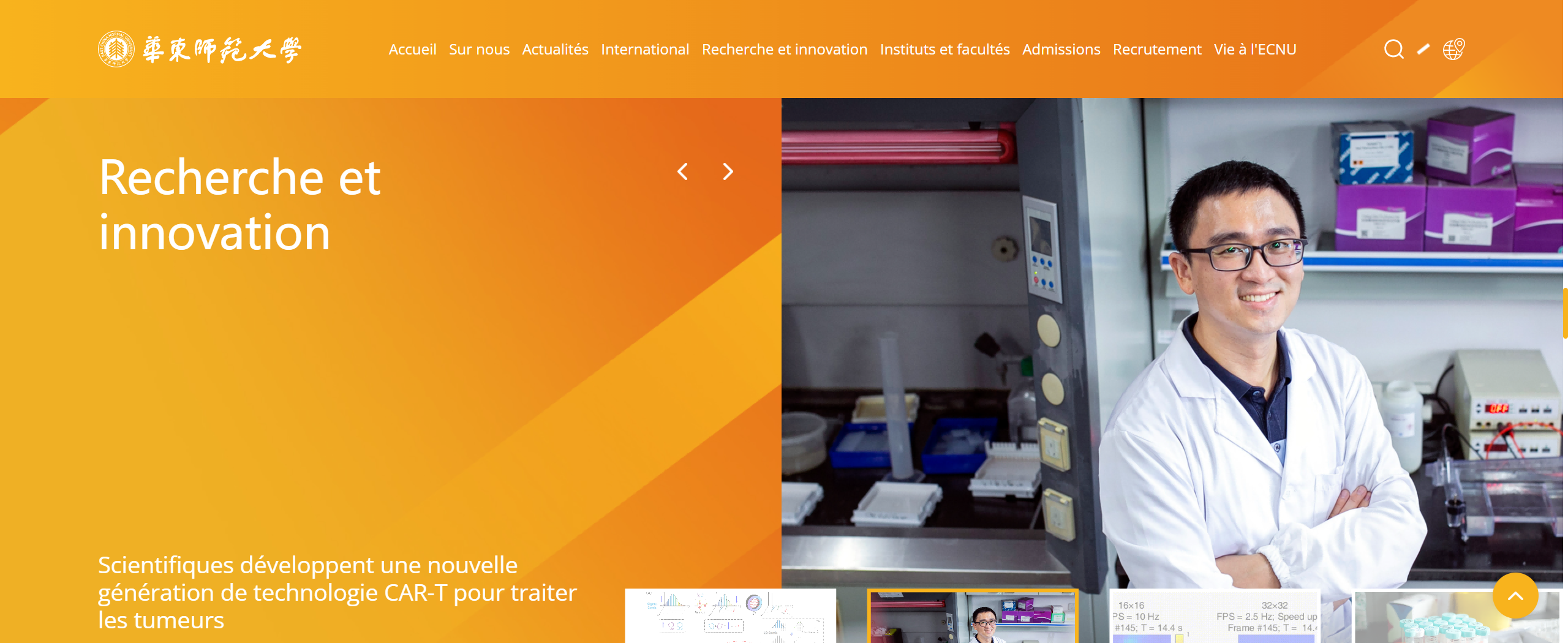 早在2013年,澳门永利皇宫官网入口法文网站开通上线,是当时国内唯一实时更新的法文高校官网。今年正值法文网站上线十周年,在旧版网站栏目的基础上,新网站进一步充实了校情概况、新闻中心、科研进展、国际合作、招生招聘、校园生活等板块,动态报道华东师大学术科研成果、师生文化活动、社会服务动向等。