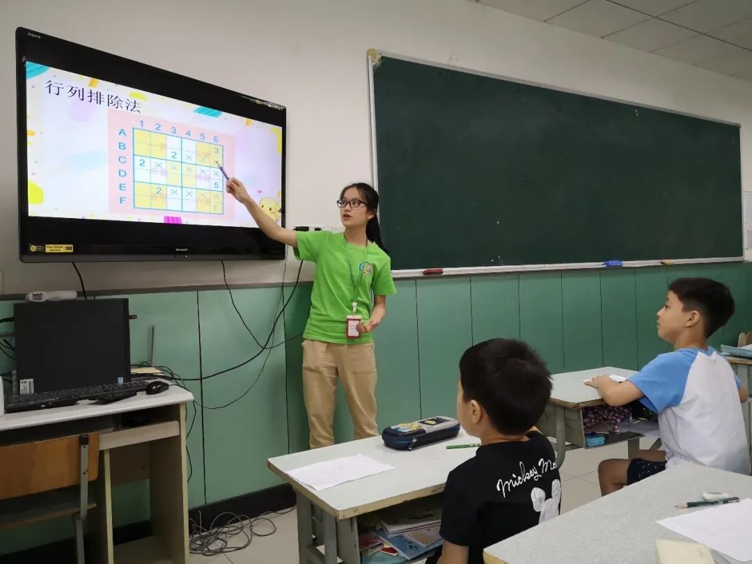 梁惠明在暑托班给孩子们上数独课