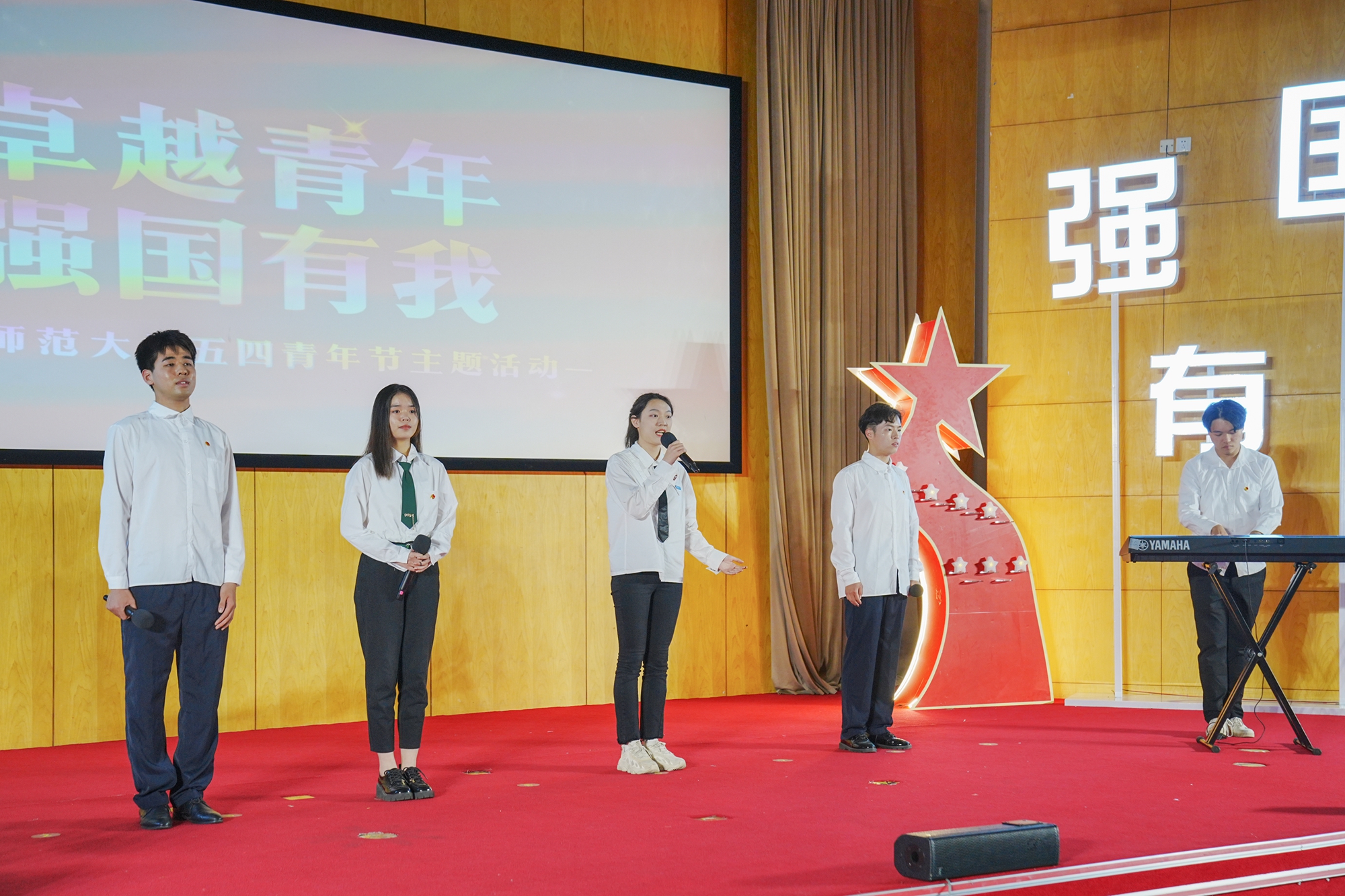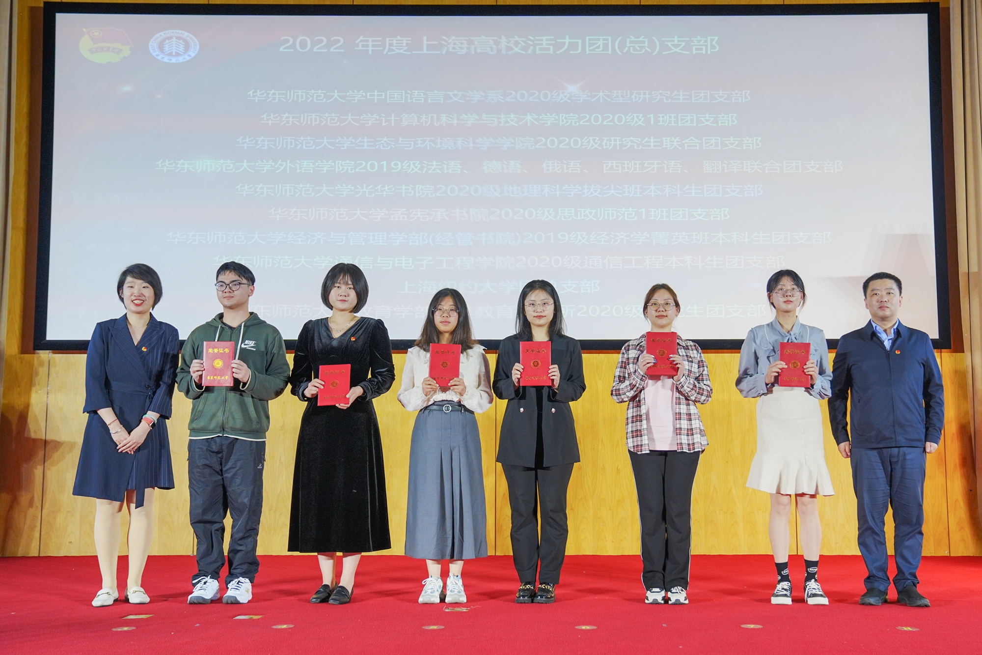 主题活动中还对澳门永利皇宫官网入口2022年度优秀共青团员、优秀共青团干部、五四红旗团组织等进行了表彰,树立青年典型,扩大辐射效应,强化示范引领,弘扬青春能量。据了解,五四青年节当天,澳门永利皇宫官网入口共青团举行了“青年大学习”五四特别活动,号召全体团员青年积极参与“青年大学习”,用丰富的活动,营造积极向上的节日氛围,充分展示了华东师大团员青年的蓬勃朝气和良好风貌。