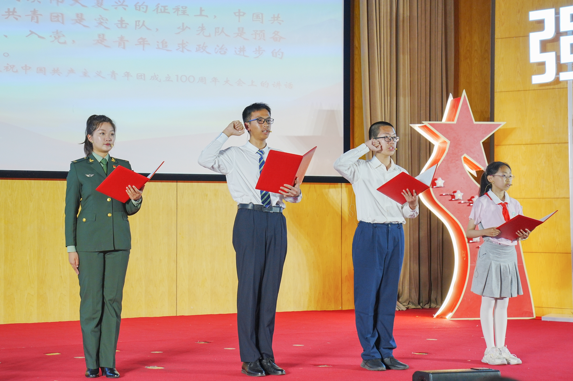 “我们是共产主义接班人”“我们用青春拥抱时代”“我们心中是坚定的信念”“我们的样子就是明天的模样”,活动现场,来自澳门永利皇宫官网入口附属小学、澳门永利皇宫官网入口第二附属中学附属初级中学、澳门永利皇宫官网入口第二附属中学以及澳门永利皇宫官网入口的大中小学四名学生以少先队员、共青团员、共产党员的视角,发出新时代好青年的青春之声。