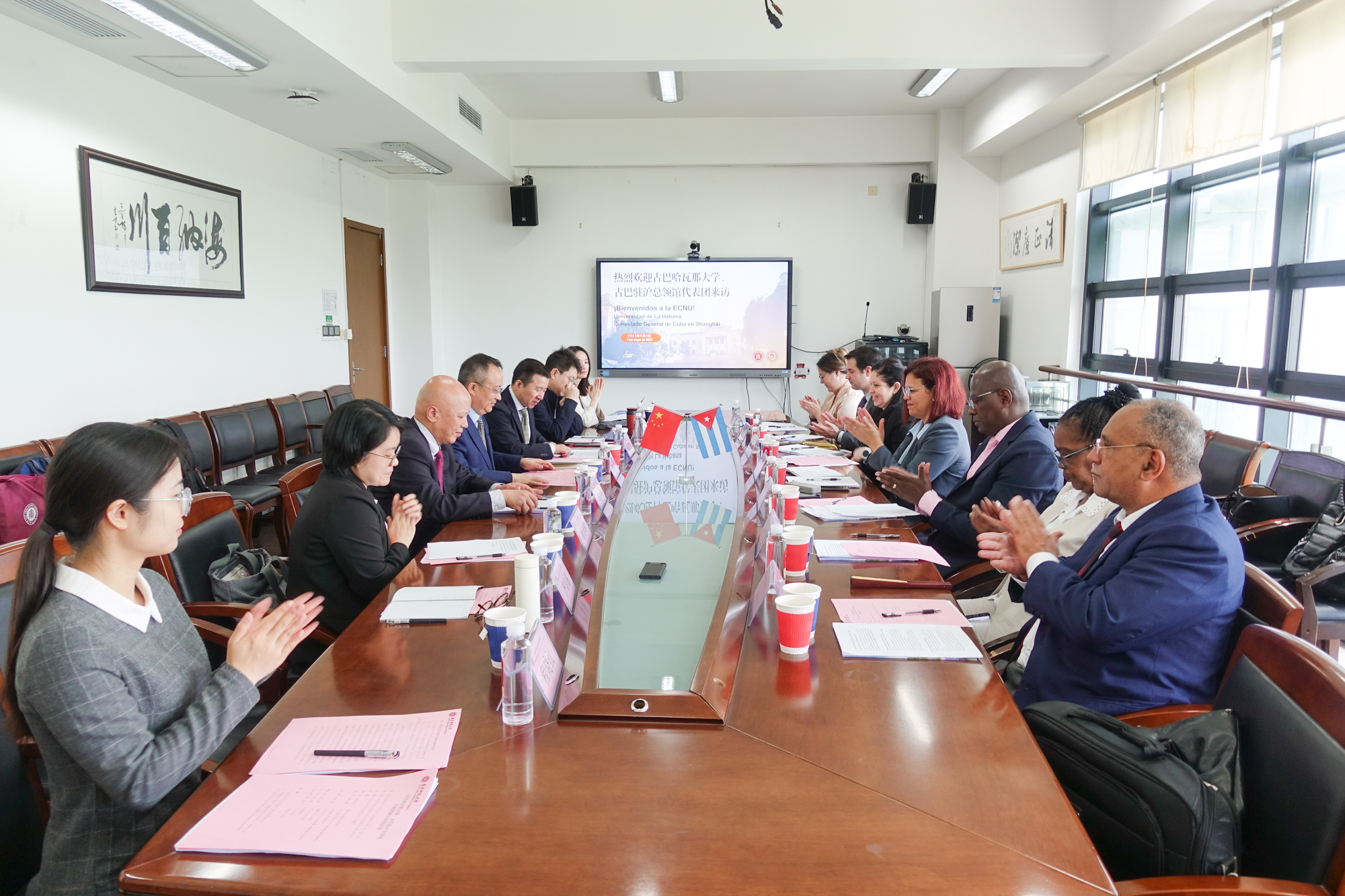5月4-5日,古巴哈瓦那大学代表团访问华东师大,就深化两校合作展开系列会谈。代表团成员包括古巴哈瓦那大学第一副校长Marian Hernández Colina教授、中国战略关系副校长Dionisio Zaldivar Silva教授、西班牙语学院院长Lidia Cuba博士,以及法律部主任Héctor Ferrán。