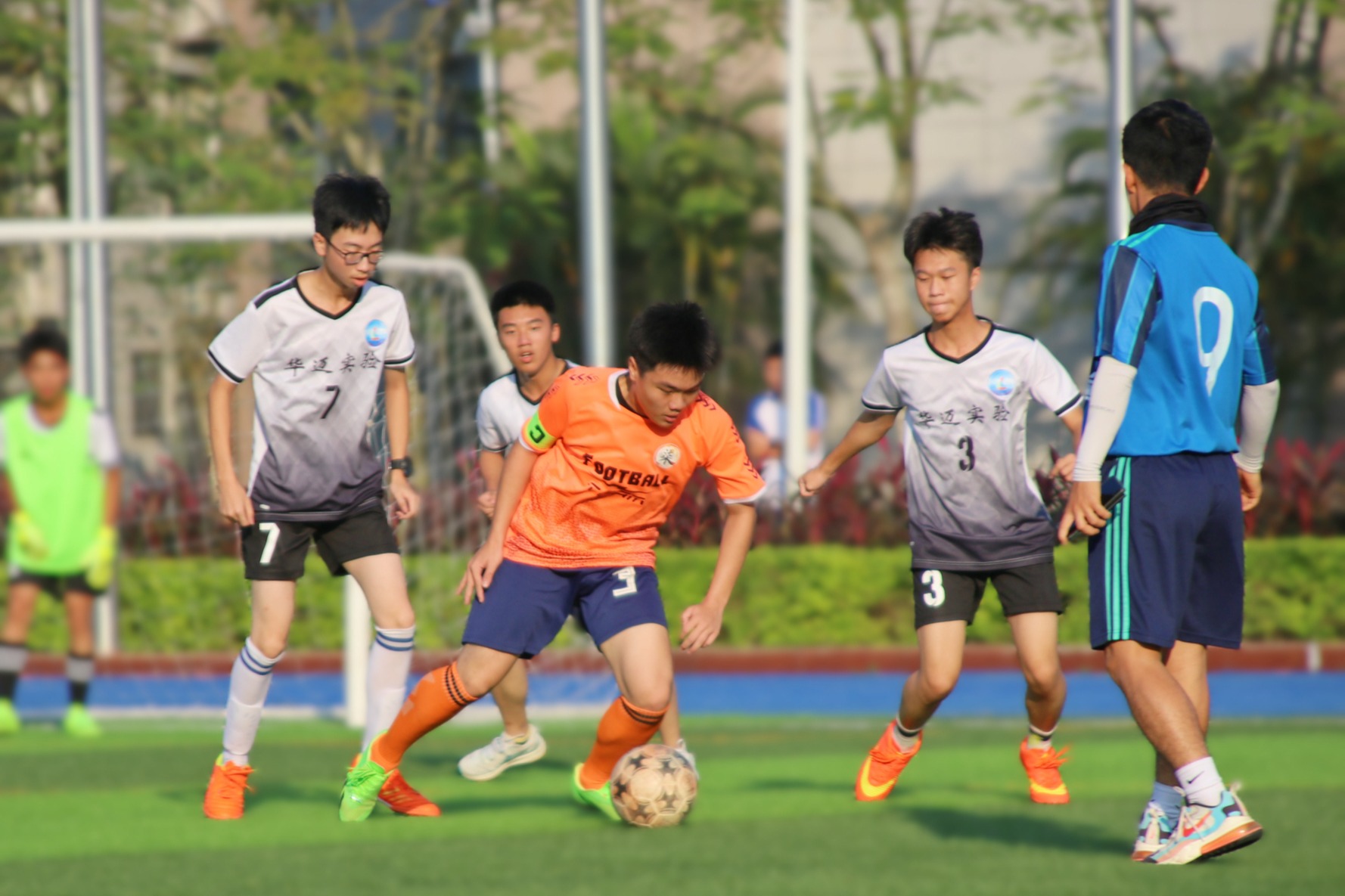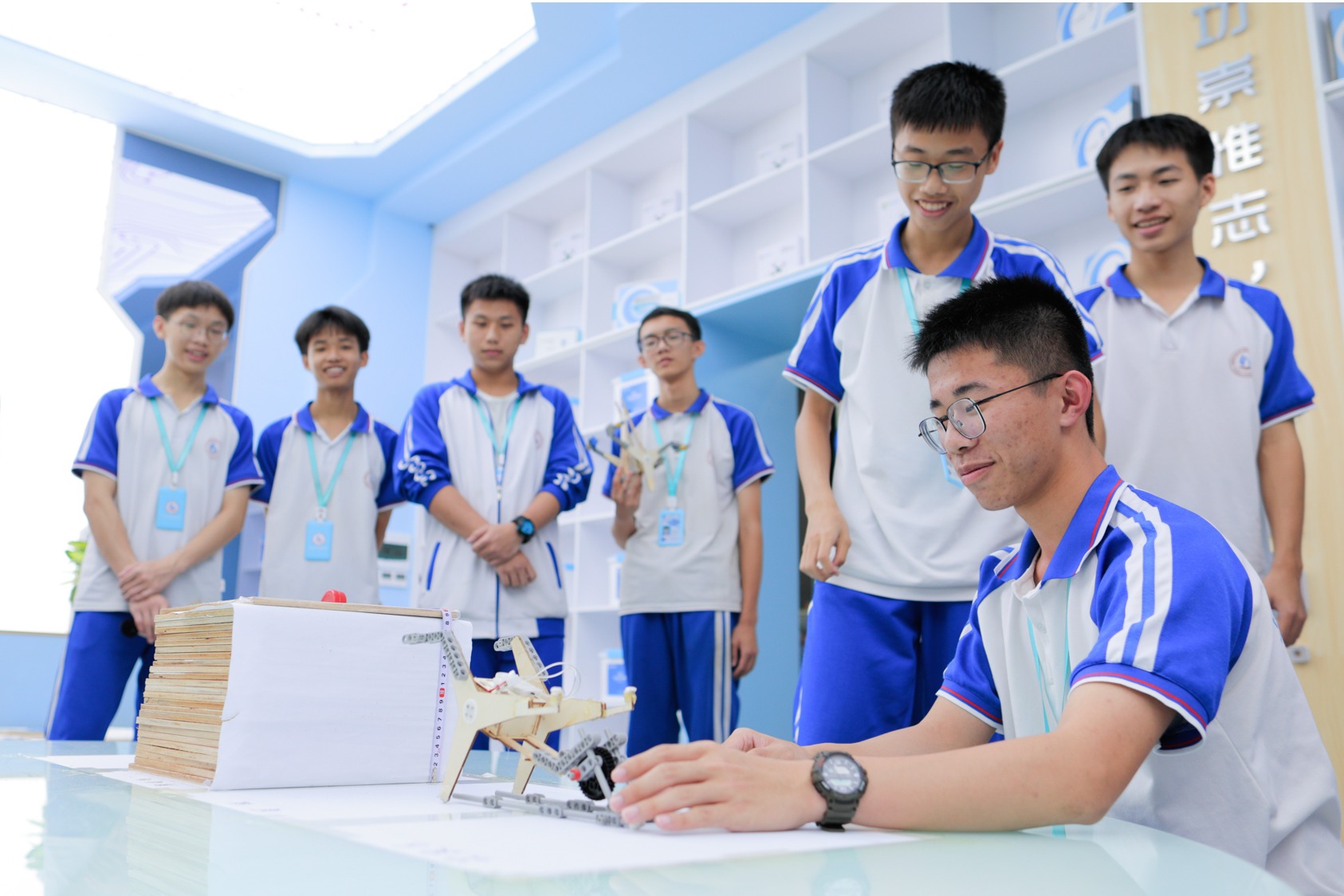 学校遵循“文化育人,以情治校,阳光管理,微笑服务”的管理理念,把“五育融合”理念全方位弥漫、渗透、贯穿于学校教育生活的全过程。学校实施精细化管理、研修性教学、个性化培养、普惠制服务,为华迈学子提供优质的教育服务。开展学习任务单式“三线合一”(知识发生线、思维发展线和认知建构线)课堂教学实践;学校对课程体系进行整体建构,整体考虑学校特色品牌的创建和学生发展的需求,聚焦“新科创”,构建了IBST(Integrated Biology,Science and Technology)海洋与科技综合课程,将生命科学、信息技术、海洋科学等和地球系统的相关内容整合起来,逐步形成多类型、多层级、相互关联的科技类和海洋类课程,形成了“两翼三类十大主轴”的课程体系:“两翼”是指“海洋+科技”,“三类”是循序渐进的“通识课程”“特色课程”“专题课程”三类课程。