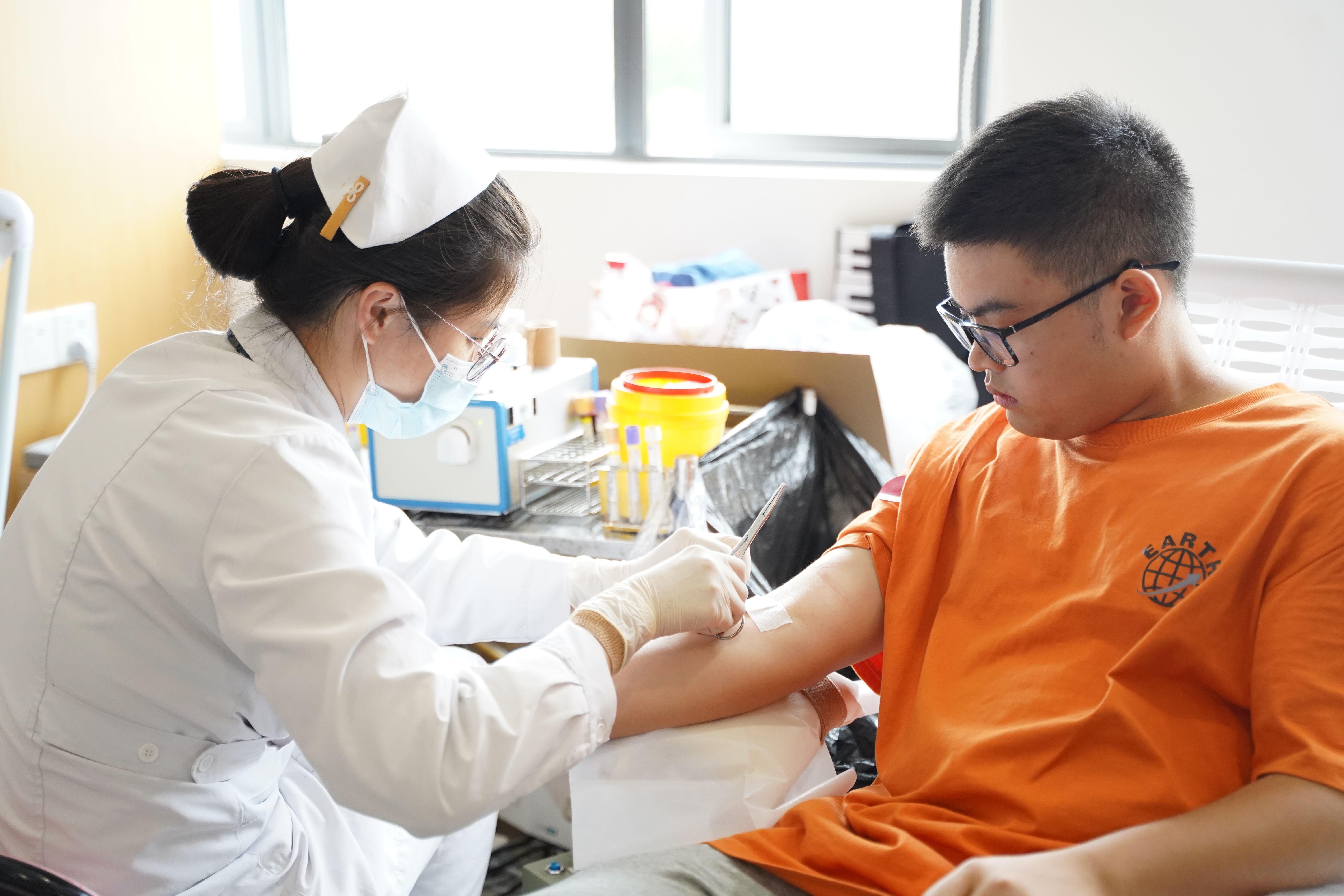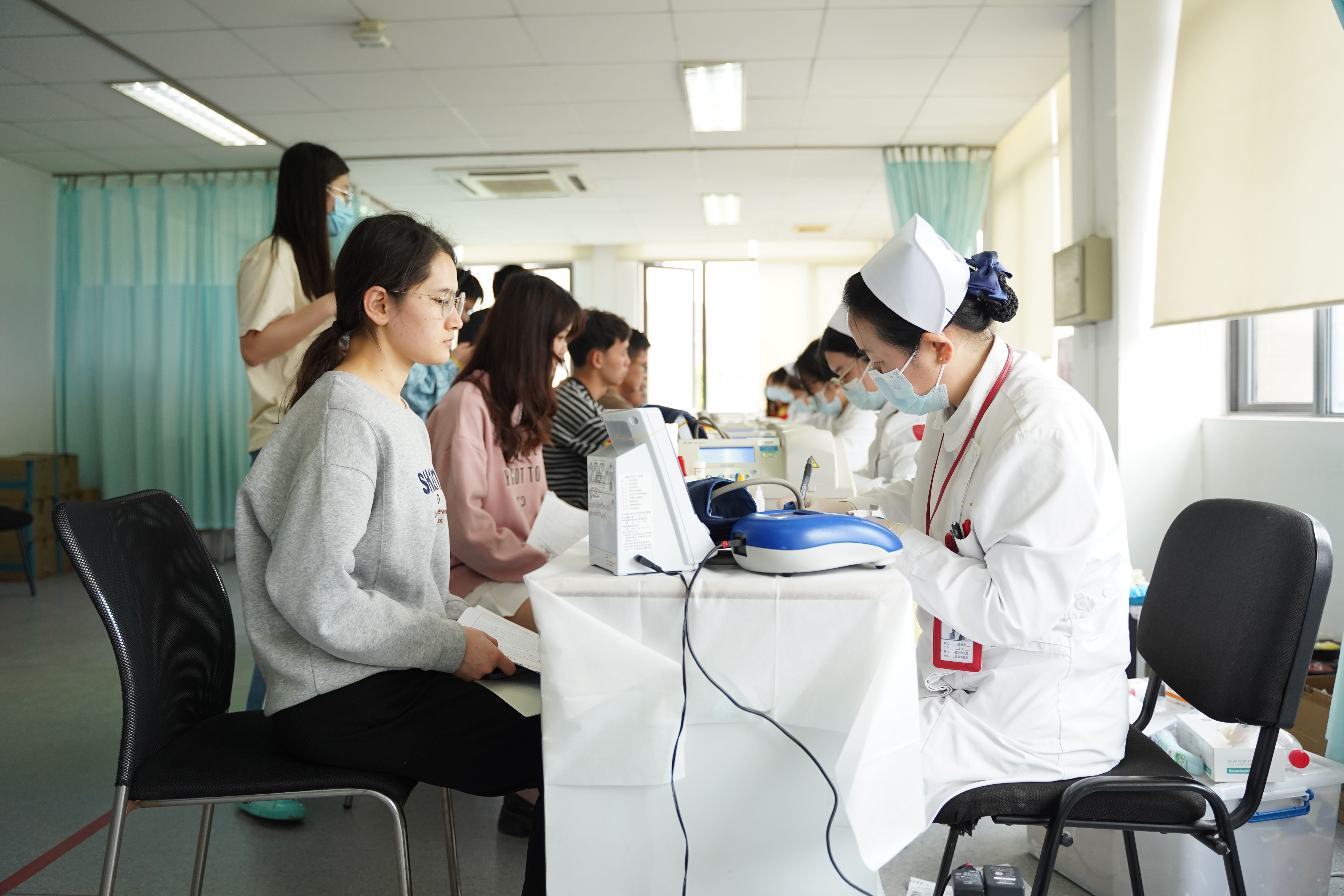今年的无偿献血活动,从先期填写献血征询单,确定各院系献血分配安排,到活动现场分区分时段有序预检、登记、体检、采血、留观,各环节井然有序。