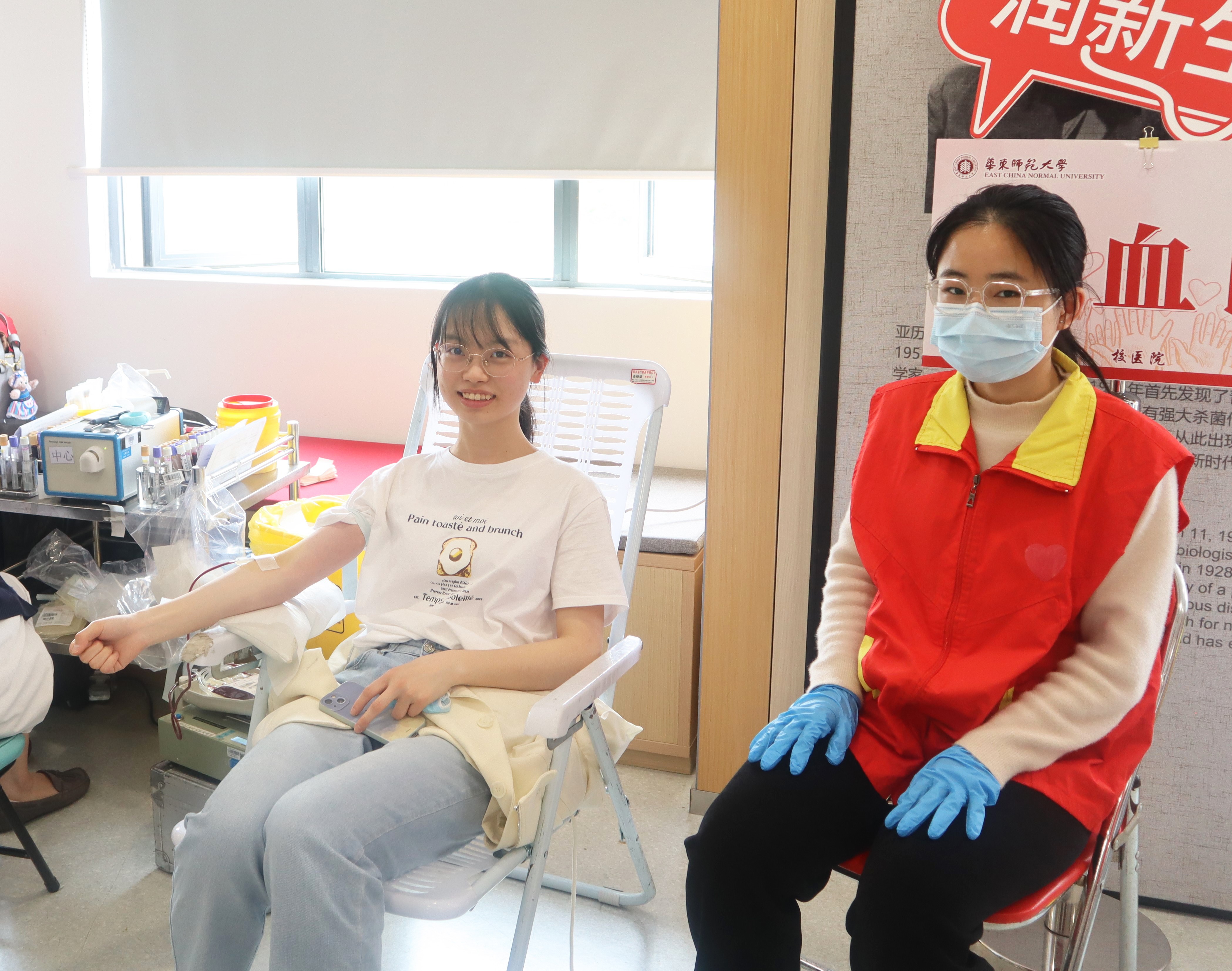 捐献青春热血,挽救点滴生命。随着经济复苏,城市再现活力,因疫情停滞了一年的无偿献血进校园志愿活动又激起了高校师生们的奉献热情。为组织并服务好广大志愿献血师生,华东师大校医院前期和上海市血液中心多次联系沟通,各部门、院系积极校内发动宣传,于5月4日至5月15日期间在两校区开展了师生志愿无偿献血活动。