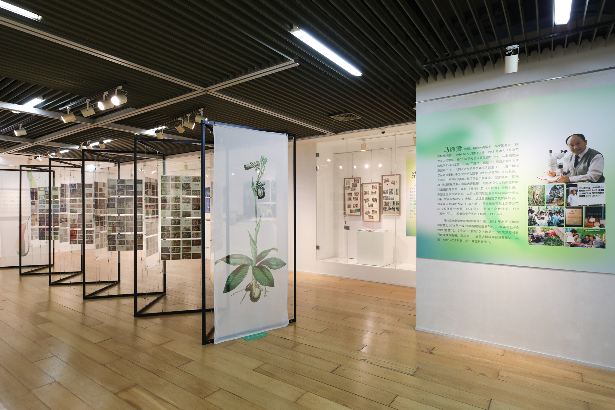 此次主题展览呈现了马炜梁教授六十年如一日追寻植物生存“智慧”的点点滴滴。既是一名科研工作者潜心问道、精思求索之旅,更是一位高校教师用心传道、诲人不倦的故事。展览共分为“植物智慧”、“草木葱茏”、“绿野仙踪”、“善事利器”、“甘为人梯”五个板块,既有《植物的“智慧”》一书中的精彩节选,也有马炜梁教授从教多年来关于植物分类和精细解剖的摄影成果,更有他在走南闯北、野外考察时手绘的植物标本卡片手稿、用于植物微距摄影的拍摄工具、参与编著的教材和科普读物等。此外,展览现场还设置了互动体验区,参展观众可以亲自动手,体验植物切片和摄影的乐趣。