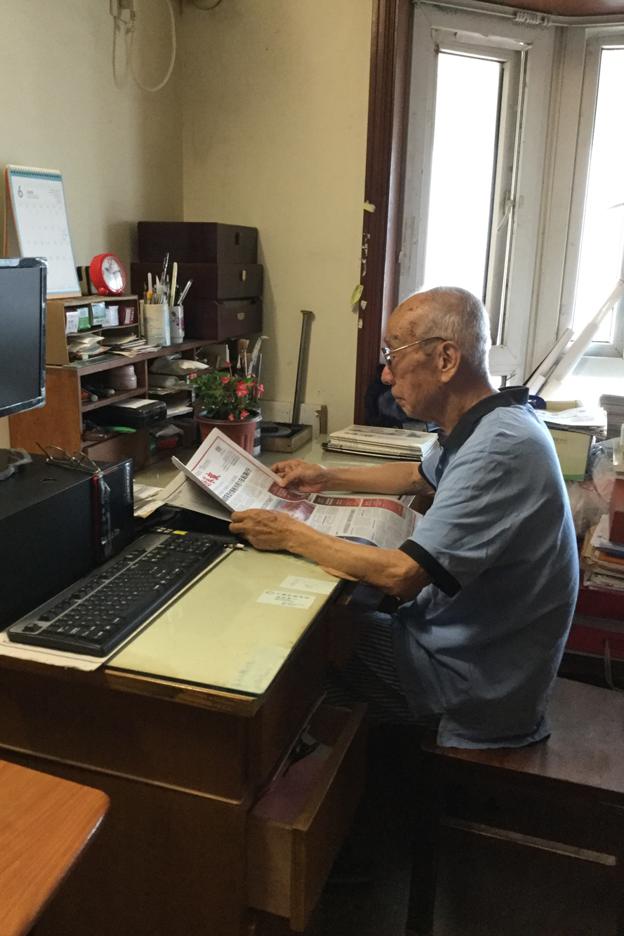 2020年夏,于纪渭老师在家中阅读《上海证券报》