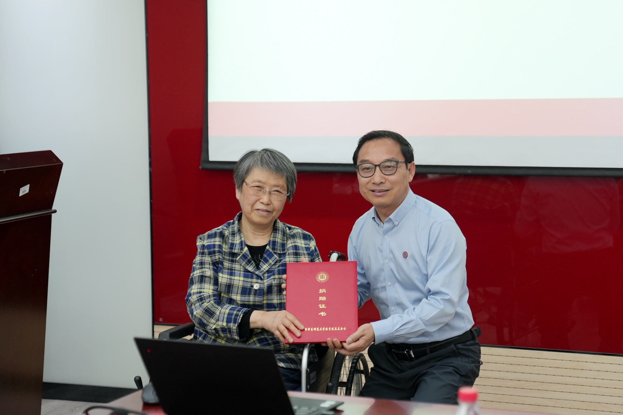 校教育发展基金会秘书长斯阳向于纪渭先生亲属颁发捐赠证书