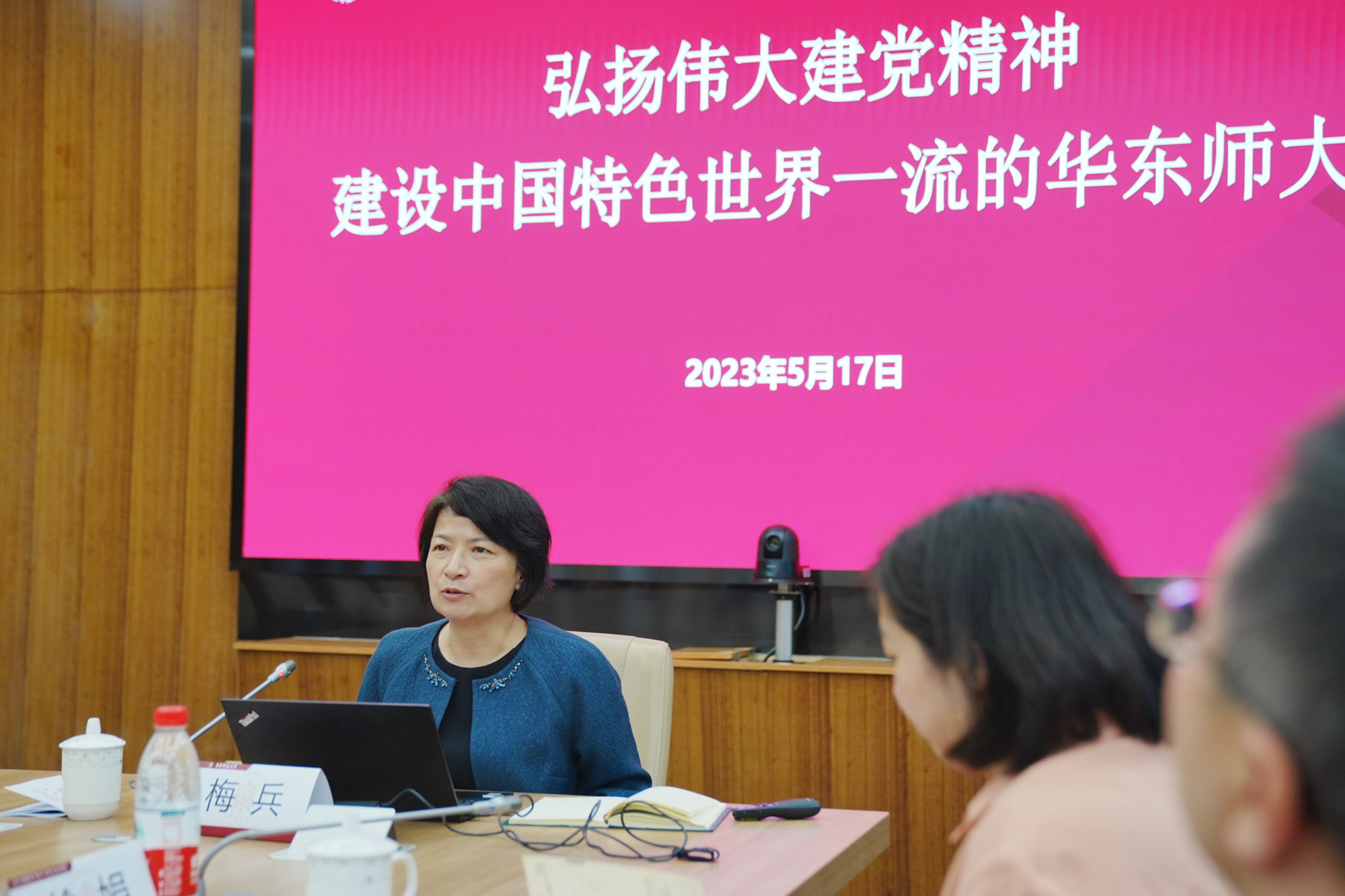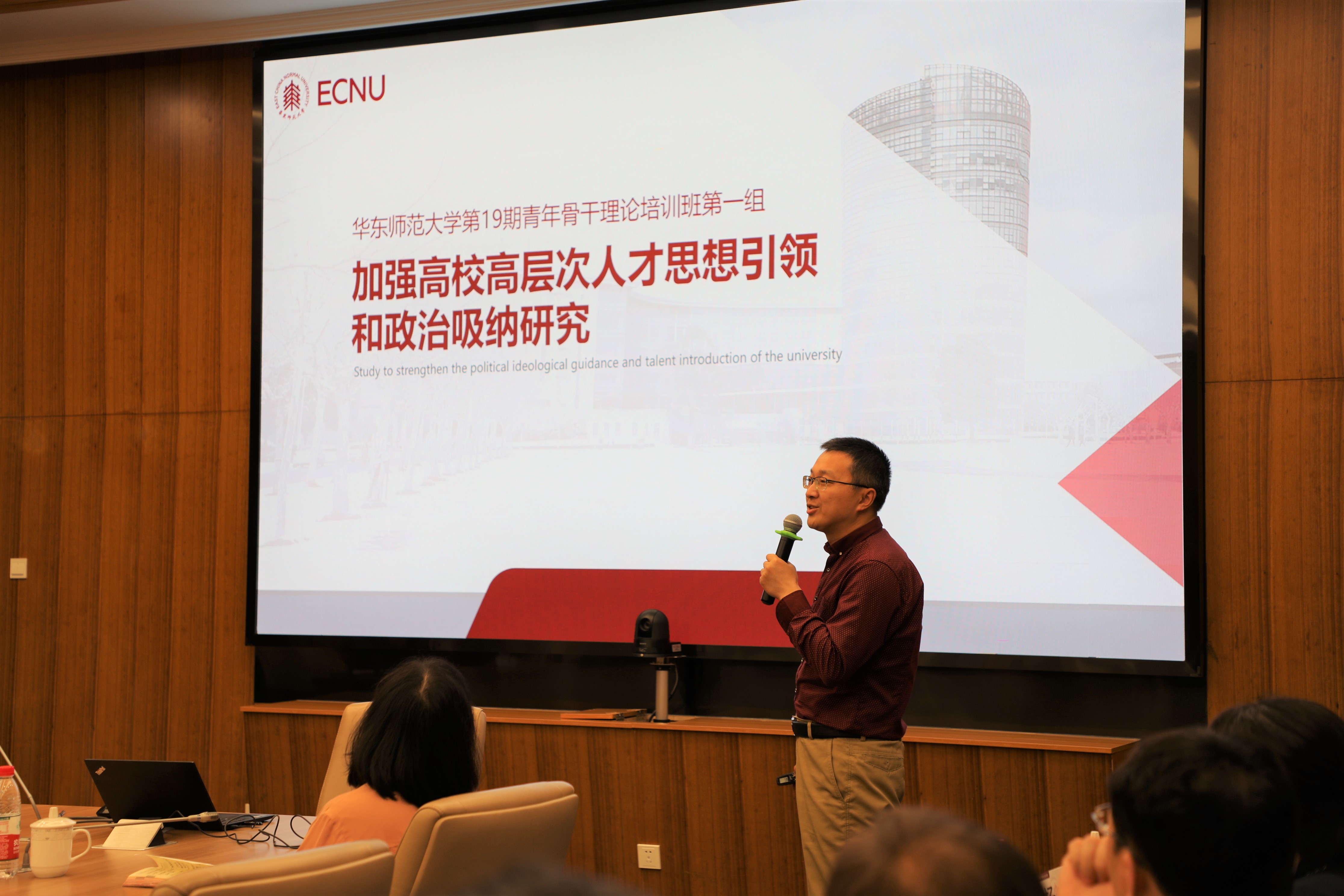 梅兵为青干班学员作“弘扬伟大建党精神 建设中国特色世界一流的华东师大”专题报告。韩春红主持报告会。