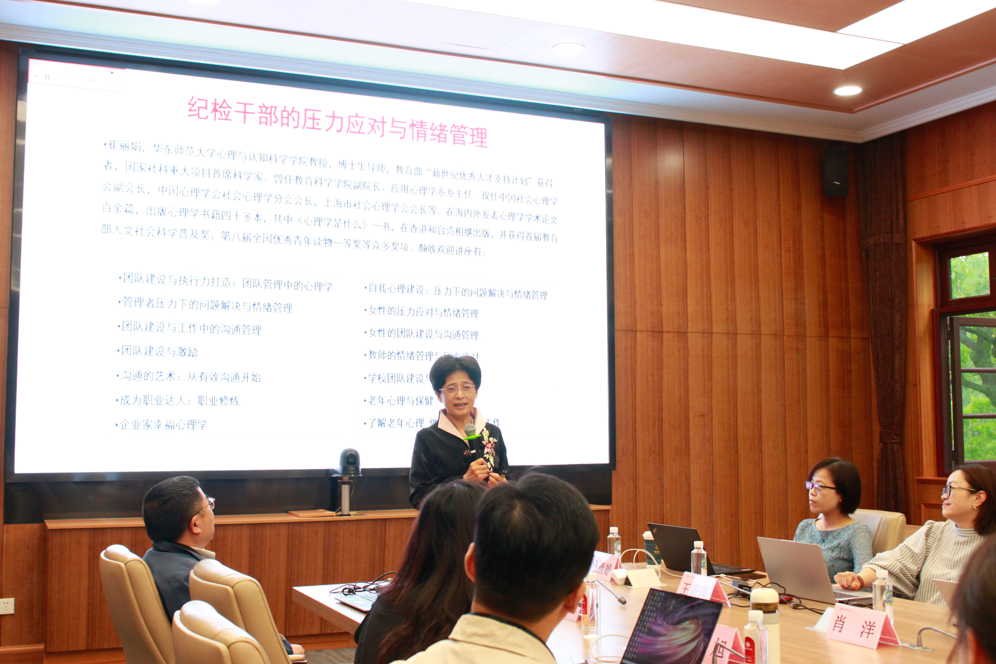 2023年纪检干部专题研讨班暨主题教育读书班第三次教学活动于5月19日在校举行。上海市纪委监委第四监督检查室主任徐亮、华东师大心理与认知科学学院教授崔丽娟应邀作专题辅导报告。校党委副书记、纪委书记曹友谊出席并主持报告会。