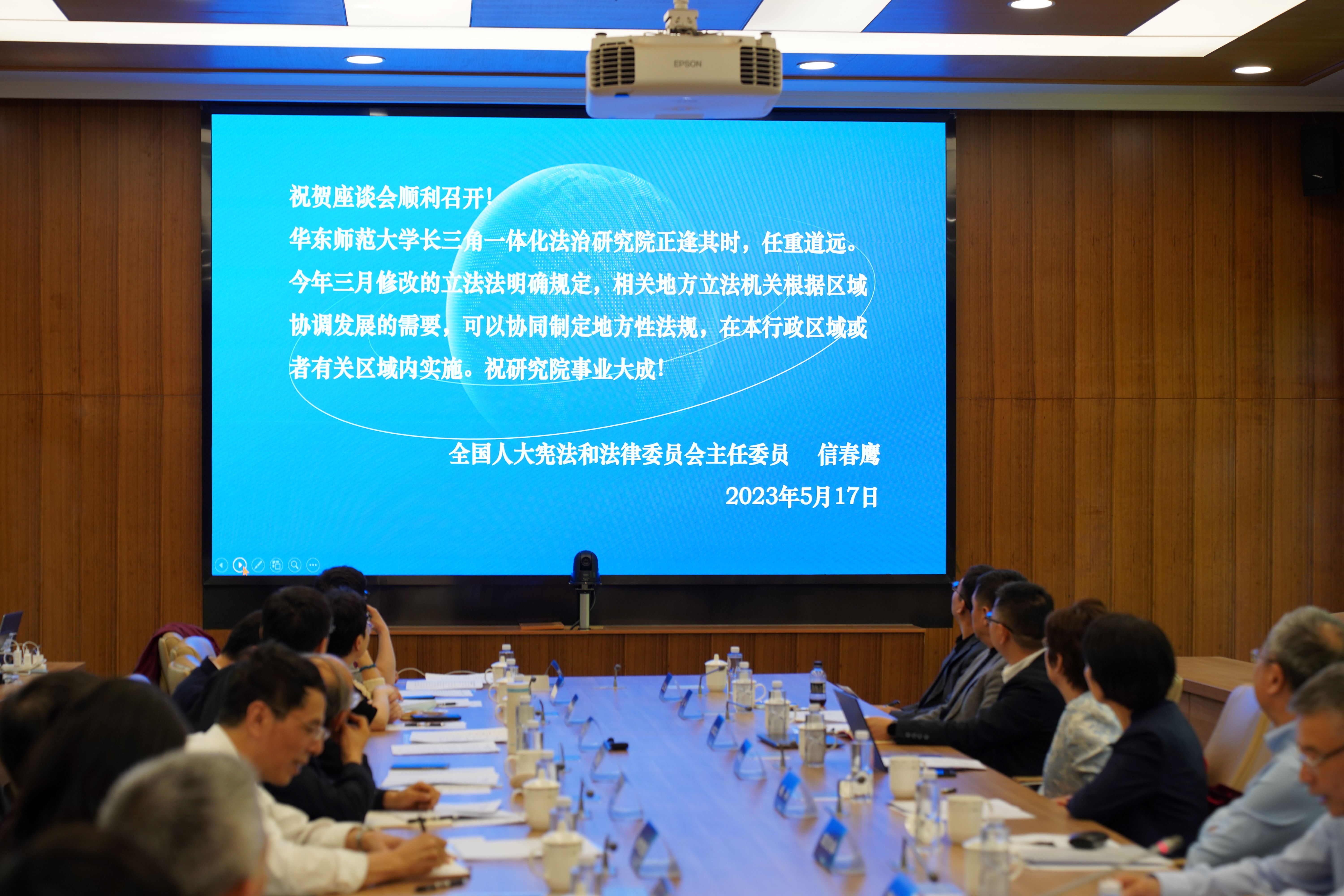 5月20日下午,由华东师大主办、长三角一体化法治研究院与法学院联合承办的长三角一体化法治研究院咨询委员座谈会暨《长三角生态绿色一体化发展示范区条例(专家意见稿)》论证会在普陀校区办公楼小礼堂举行。来自上海市、江苏省、浙江省、安徽省人大,长三角生态绿色一体化发展示范区执委会,上海市法学会以及华东师大相关单位的负责人和专家参会。会议由长三角一体化法治研究院咨询委员会主任陆晓栋主持。