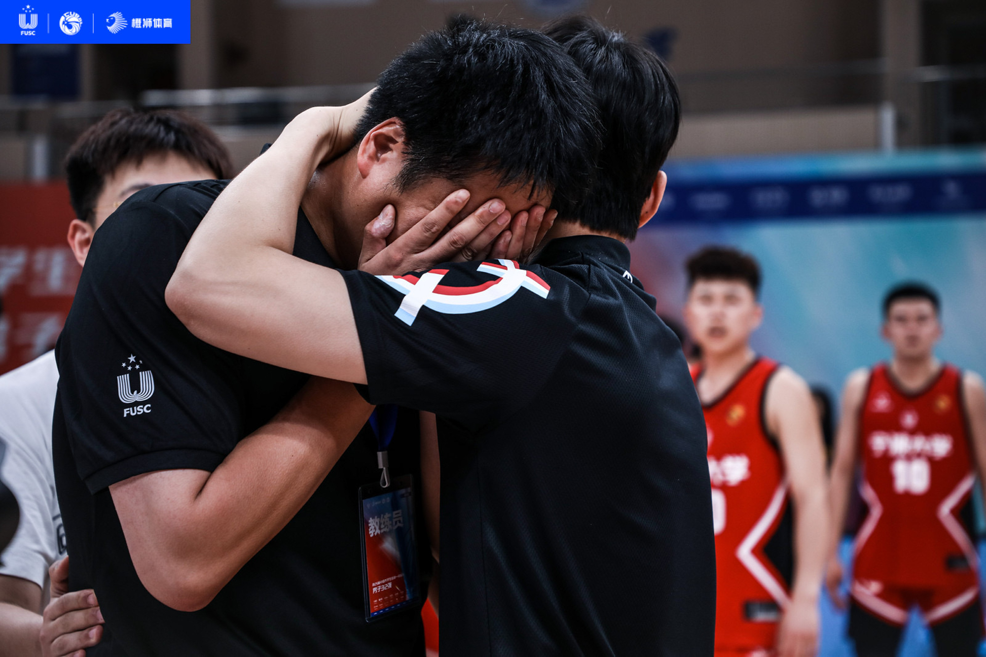 八强赛上,曾经的华东师大男篮队员、如今的主教练孙柳青泪洒球场
