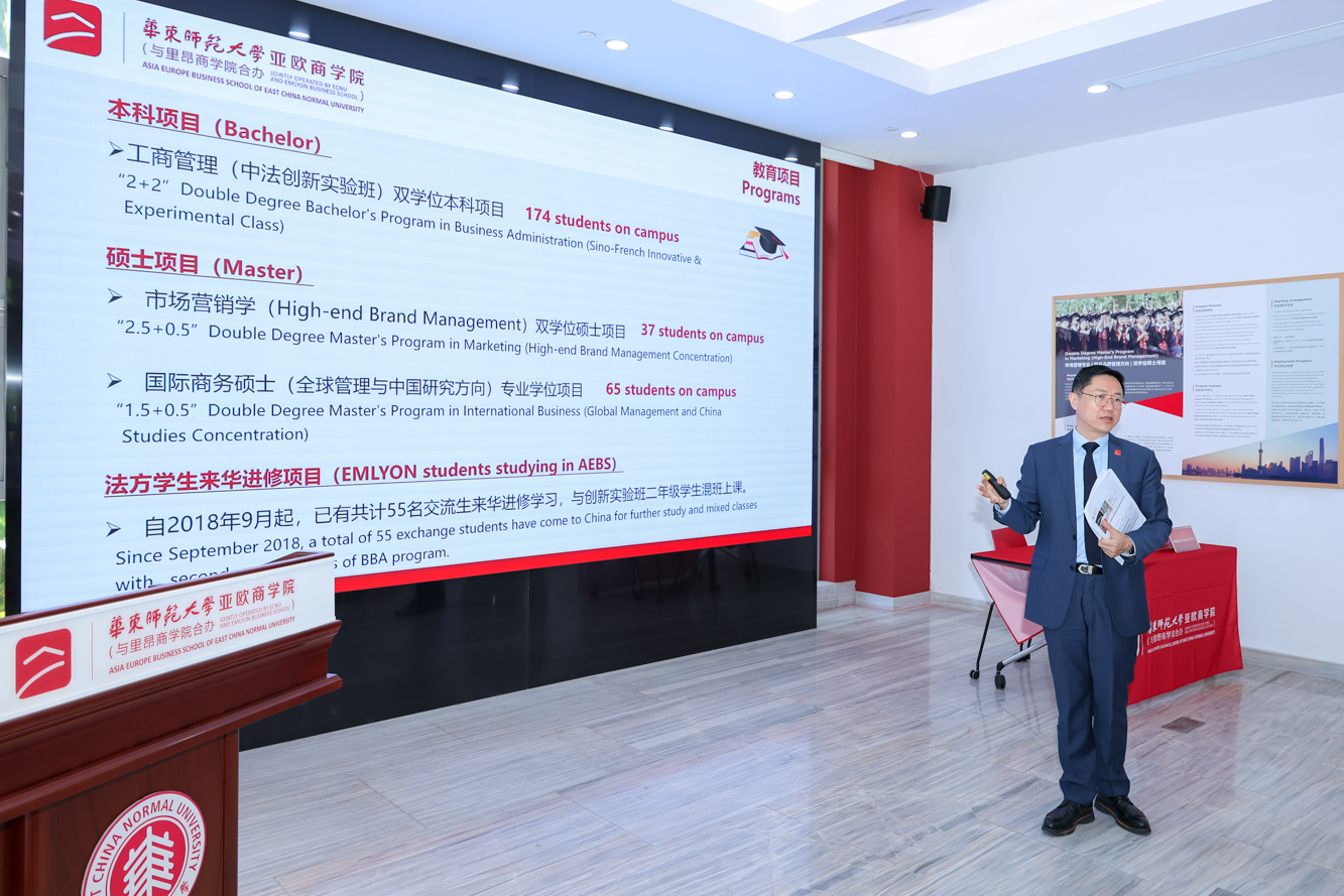 亚欧商学院中方院长何佳讯、法方院长王华汇报学院发展成果
