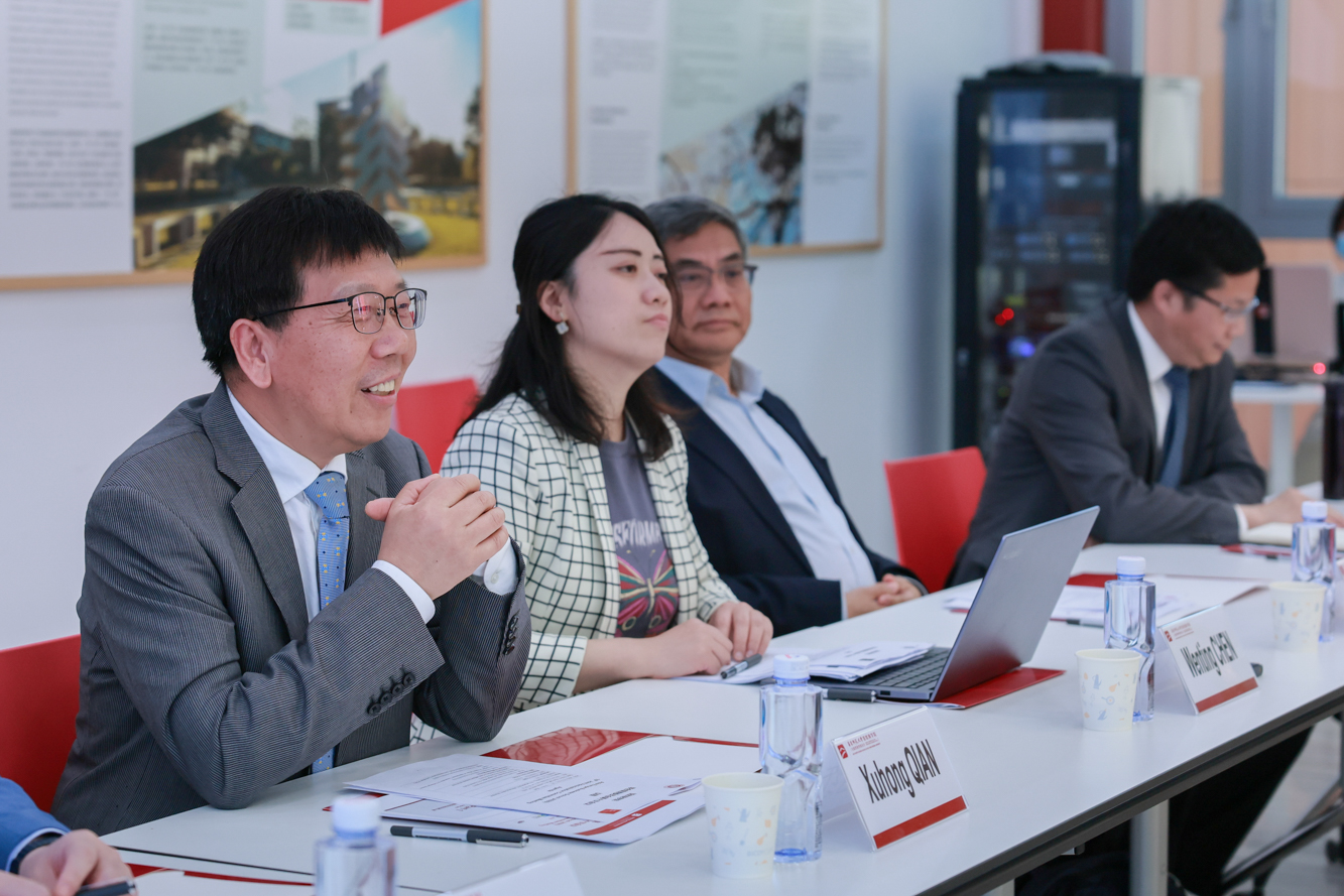 随后,双方就亚欧商学院未来五年规划开展充分商谈,主要涵盖学院项目发展、师资建设、国际认证等方面,具体对加大学院跨学科项目规模、设立亚欧商学院法国办事处、推进“智能商业”专业方向建设、联合科研创新与师资发展、提高教育标准和质量等议题进行深入探讨,并就亚欧商学院第十一次联合管理委员会的会议时间与讨论事项达成了一致意见。