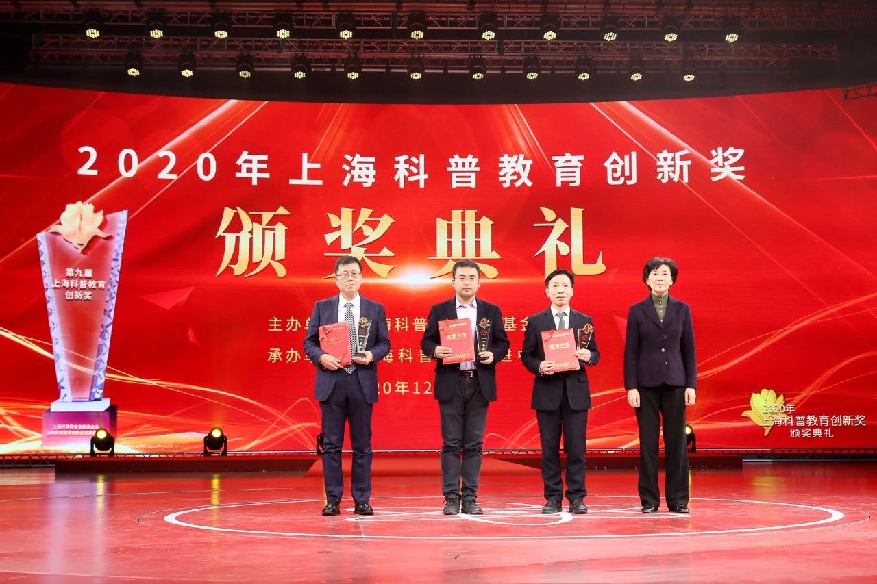 2020年,姜雪峰教授(左二)荣获上海科普教育创新奖——科普贡献奖(个人)一等奖