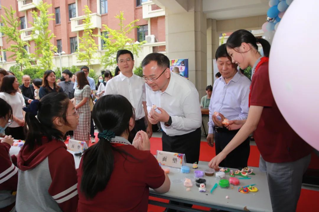 本次活动分设主会场和分会场,主会场设在集团成员校之一的永德实验幼儿园,分会场为各成员校校园。闵行区委常委、副区长赵亮,华东师大党委书记梅兵、副校长戴立益、基终部部长李志聪,闵行区教育局党工委书记恽敏霞、教育学院副院长龚耀昌,吴泾镇镇党委书记金海民,中航商发有限公司党委委员、副总经理蒋明繁,国家一级演员王珮瑜等领导和嘉宾参与了此次活动。