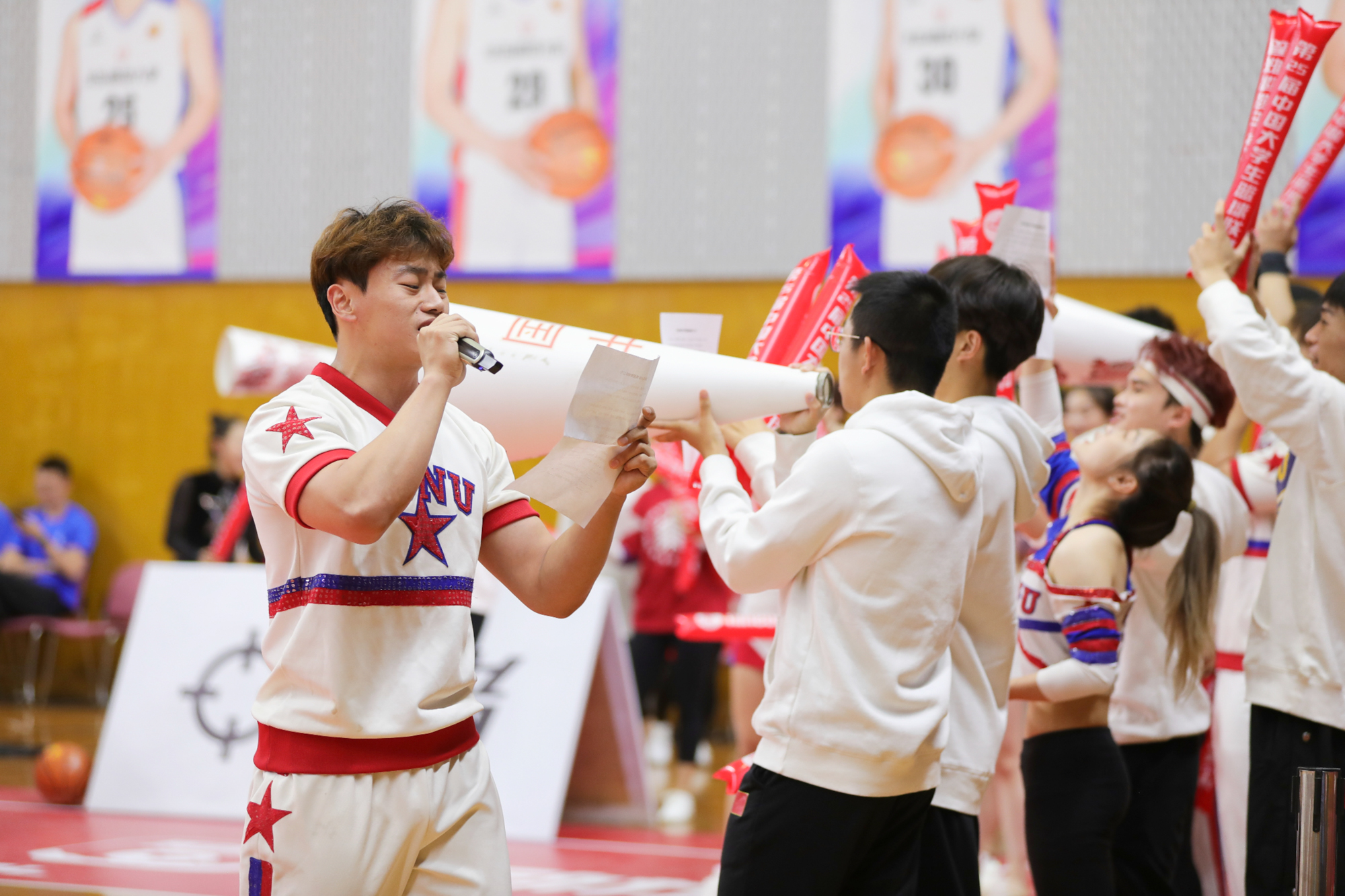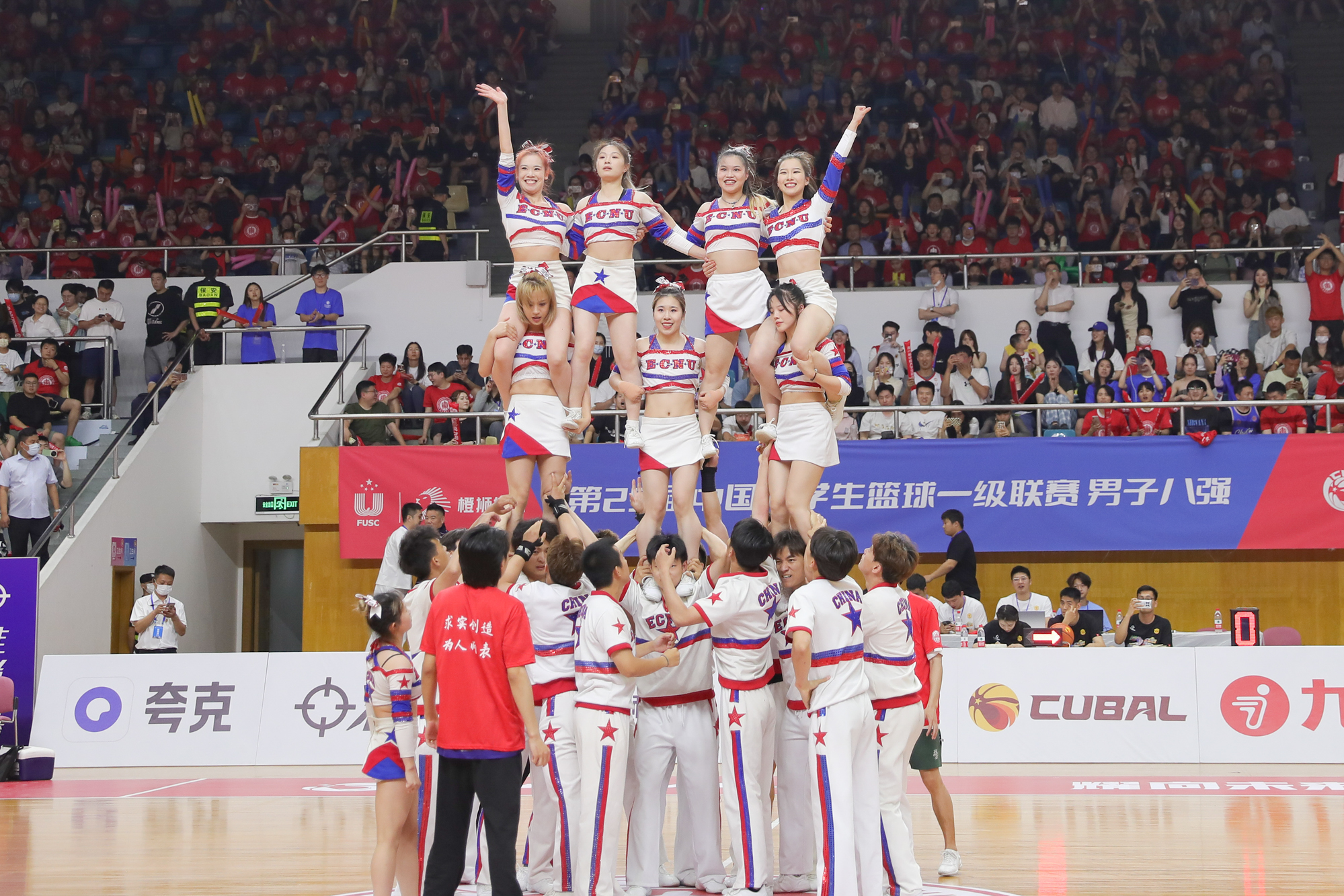 赛场上还有一道靓丽的风景——华东师大全明星啦啦操队,这支“梦之队”活力满满、激情四射,用青春动感的舞姿为男篮加油助威,展现出澳门永利皇宫官网入口运动员的昂扬斗志。