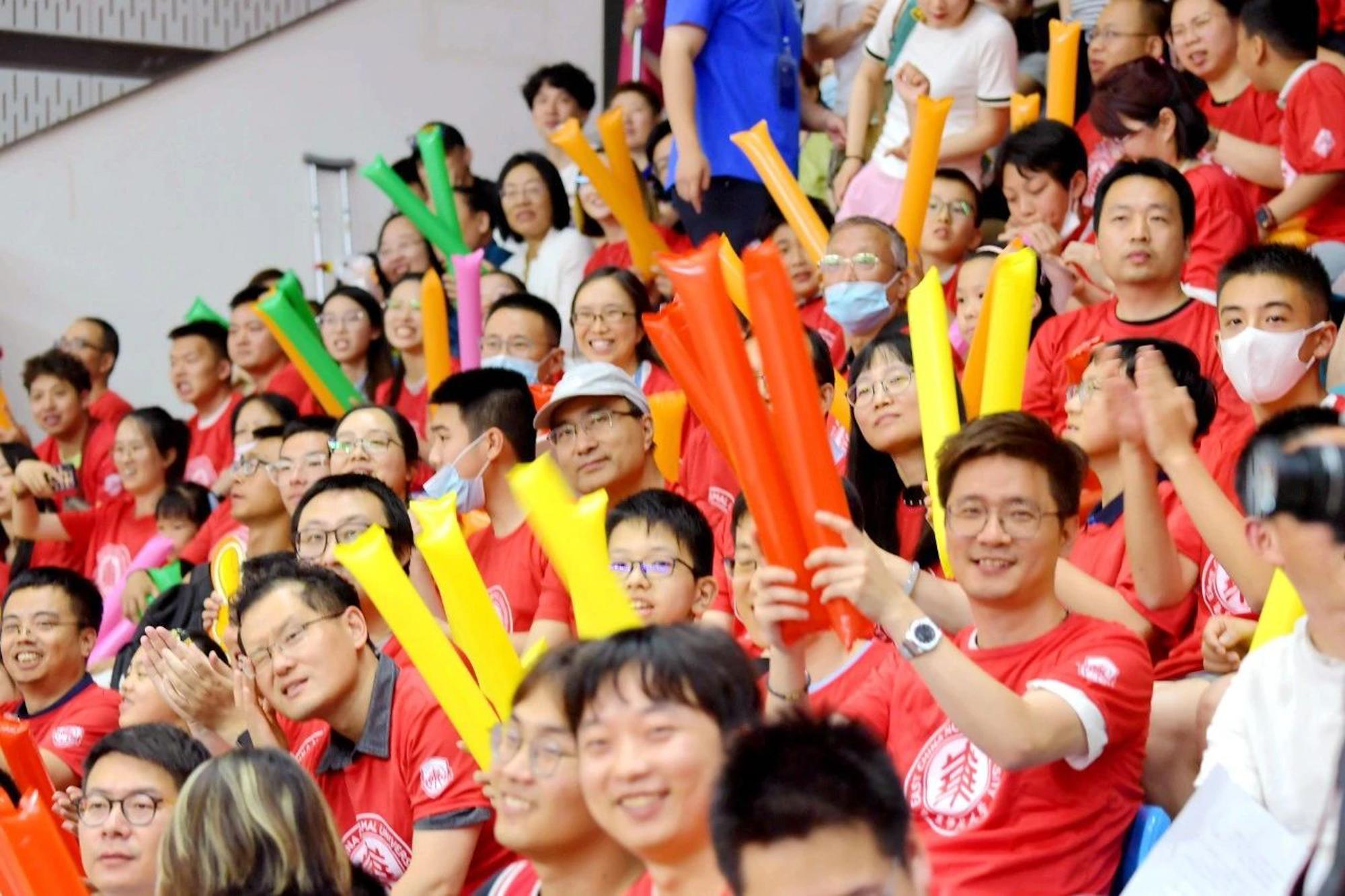 普陀校区体育馆座无虚席,全国八强队华东师大、中南大学强强对话,唤起了无数人对于篮球的热爱。漫天挥舞的旗帜、响彻全场的呐喊、精彩绝伦的表演,一场用青春等来的“全国大赛”让人热血沸腾,师生校友主场观赛直呼“过瘾”。