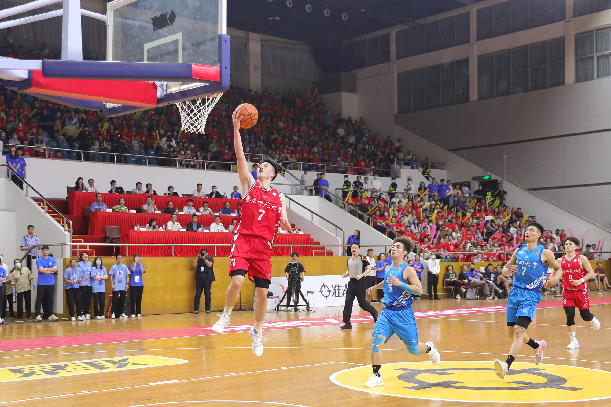 迎“篮”而上,追“球”不止。本届比赛华东师大男篮队首次闯进全国八强,将比赛首次带回主场,已经创造历史!