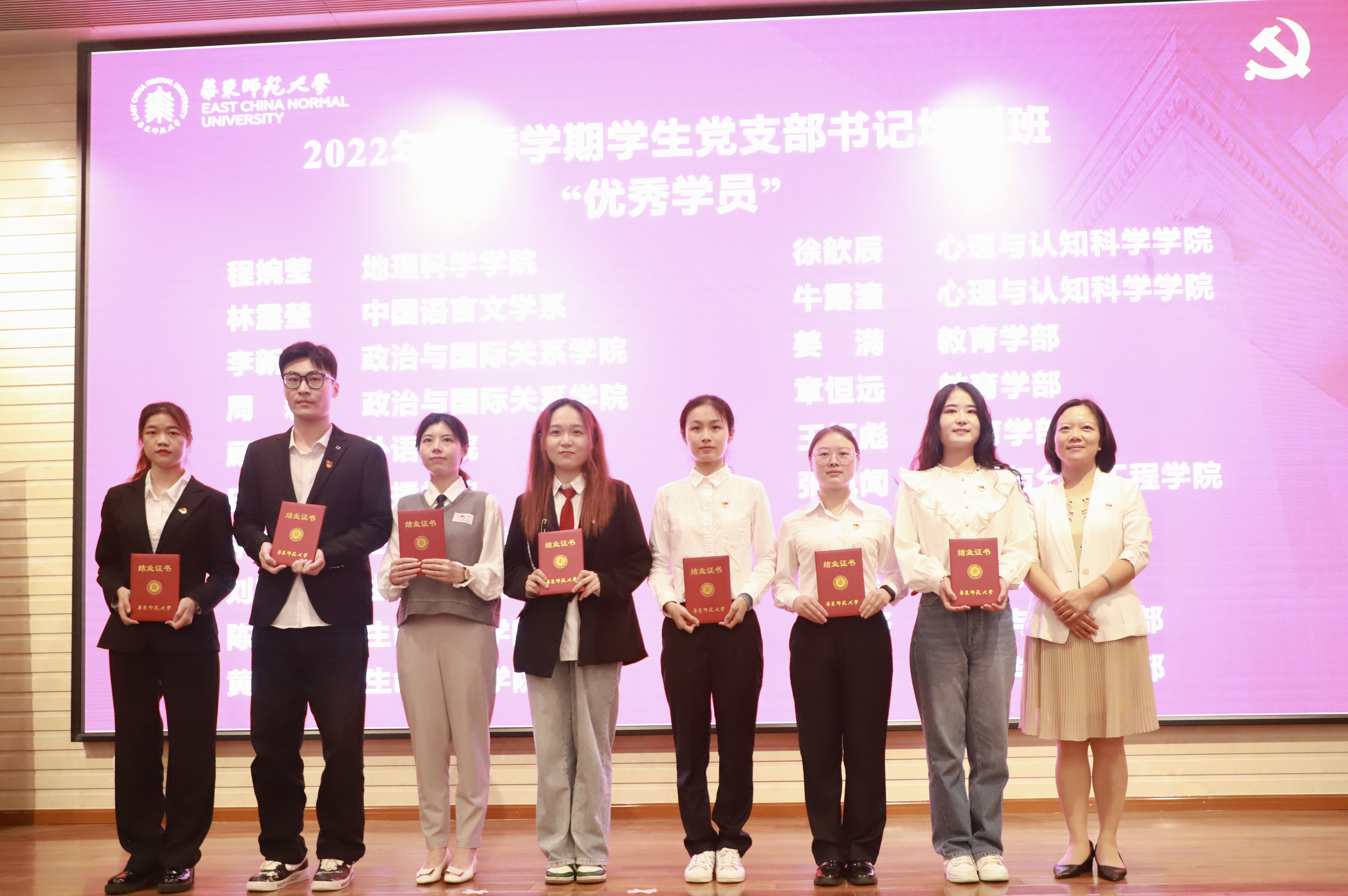 韩春红为2022年秋季学期学生党支部书记培训班“优秀学员”颁发证书