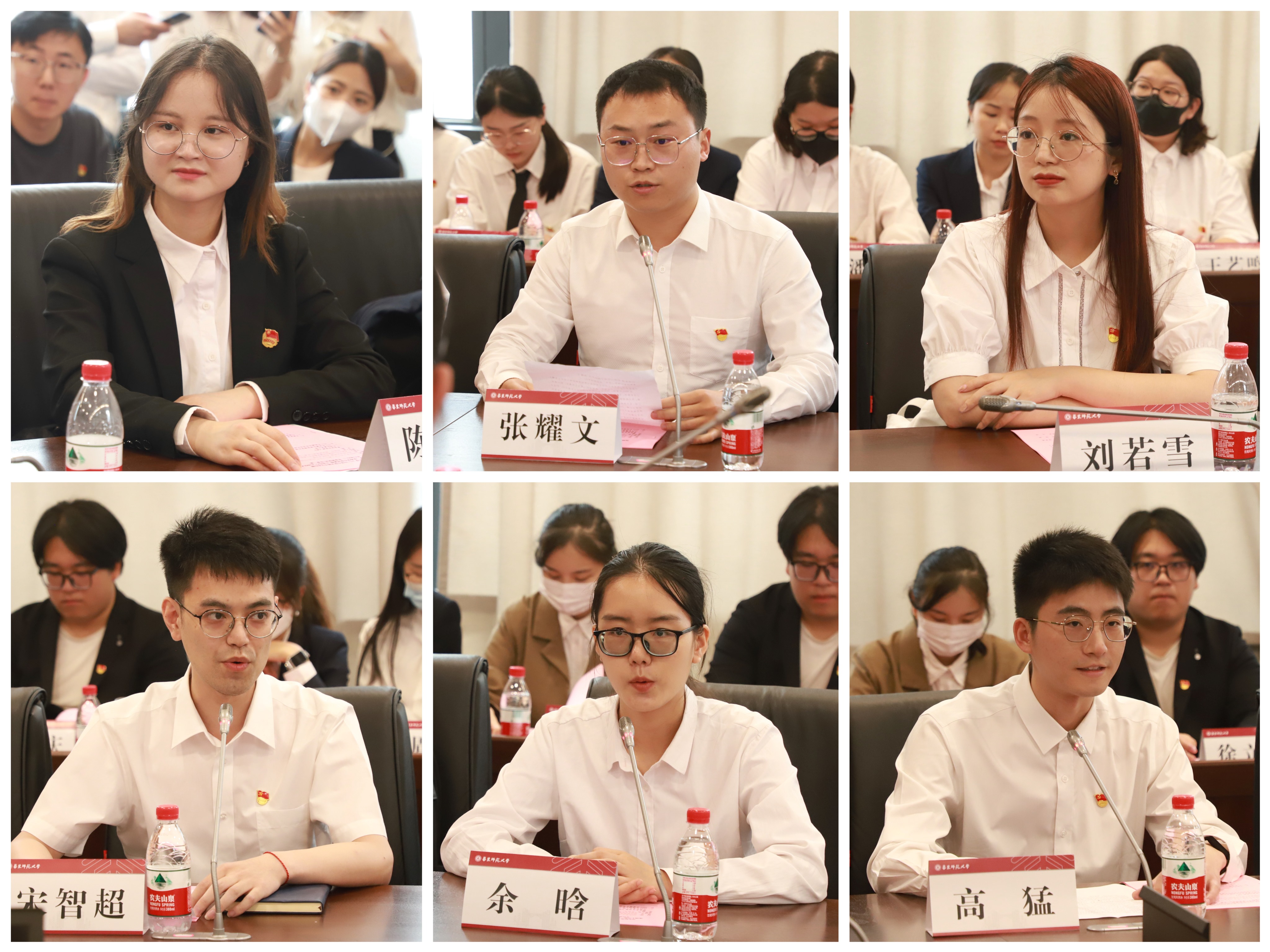 教育学部陈洪莹、经济与管理学部张耀文、马克思主义学院刘若雪、地理科学学院宋智超、计算机科学与技术学院余晗、政治与国际关系学院高猛等奔赴各地基层的2023届选调生代表依次发言,交流心得体会。