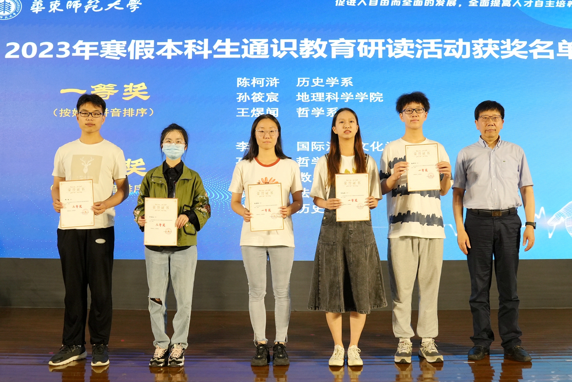 华东师大一直致力于推动思维导向通识教育,会上,钱旭红和孟钟捷为2023年“寒假本科生通识教育研读活动”颁奖。该活动得到了各专业同学的积极关注和踊跃参与,全校累计收到118个作品,经过专家组的评审和讨论,共评选出一等奖3人、二等奖5人、三等奖10人、优胜奖21人。