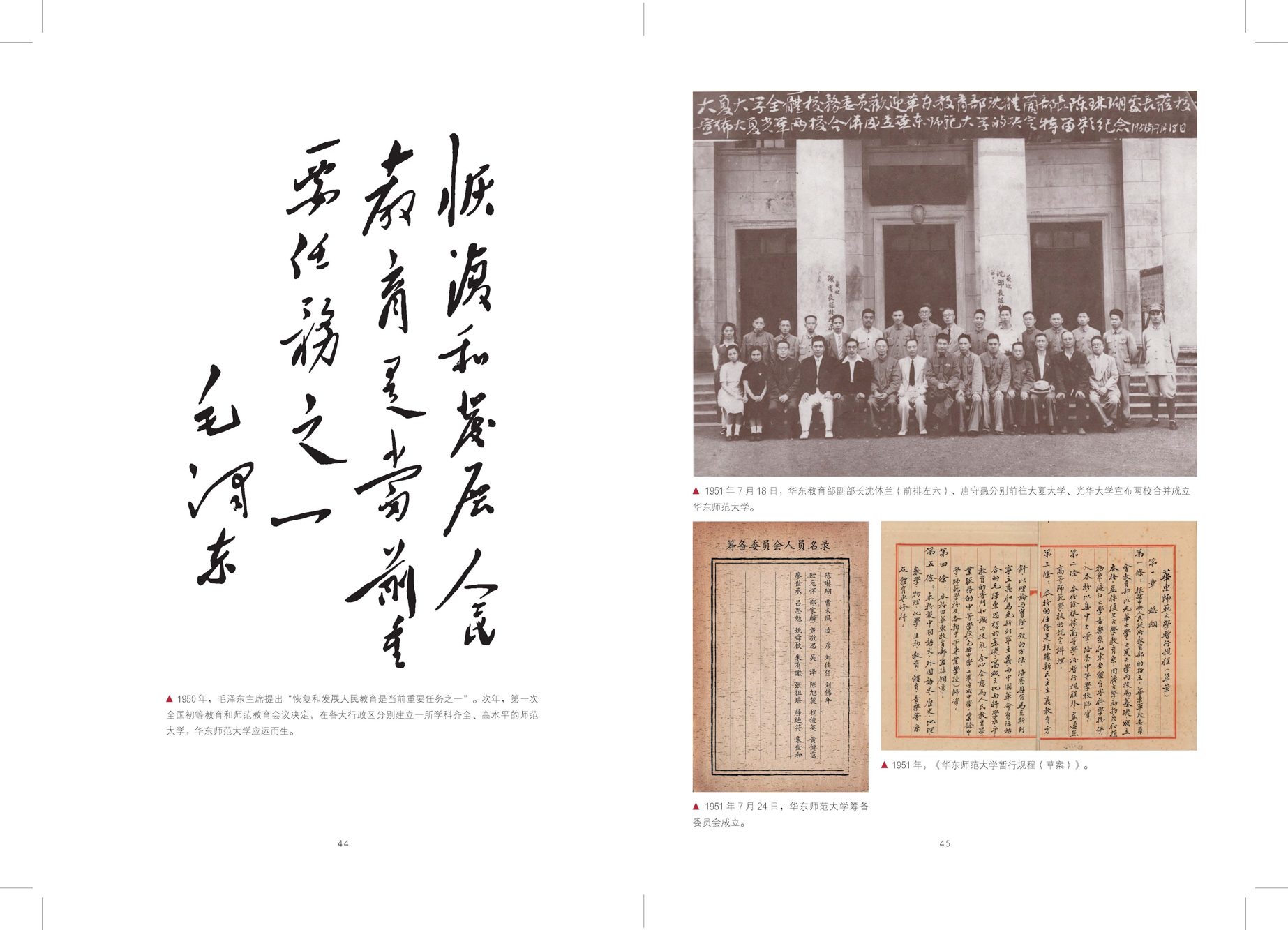 校党委书记梅兵、校长钱旭红专门为《图说华东师大》做序。在序言中指出:一流大学需要一流文化。在长期的办学过程中,华东师大形成了自己独特的文化和大学精神。立足新时代,学校正全面实施卓越育人、卓越学术和卓越治理,建设文脉深厚、智慧卓绝的中国式现代化优雅学府。因此,深入发掘档案资源、创造卓越校园文化,为华东师大实现卓越目标提供有力支撑恰逢其时。我们希望这本《图说华东师大》,能成为学校“新生第一课”的重要参考。同时,通过《图说华东师大》对校史校情的精彩呈现,广大师生校友不仅更加了解熟悉学校的前世今生,也将更加爱校荣校,为学校赋能,坚勇并进,共同致力于立足中国大地的世界一流大学建设。