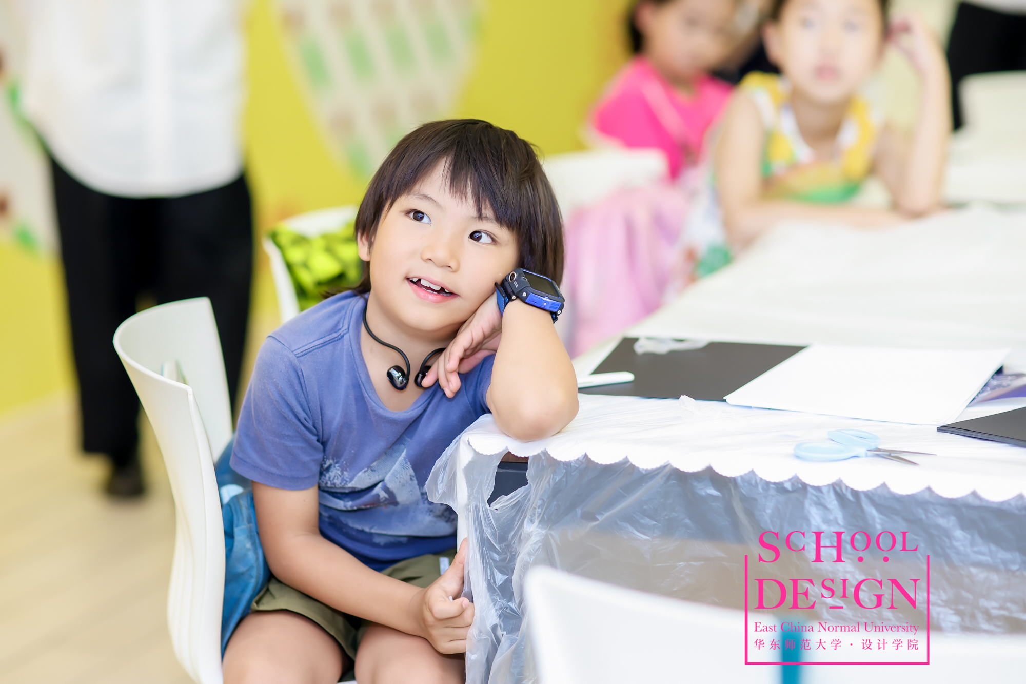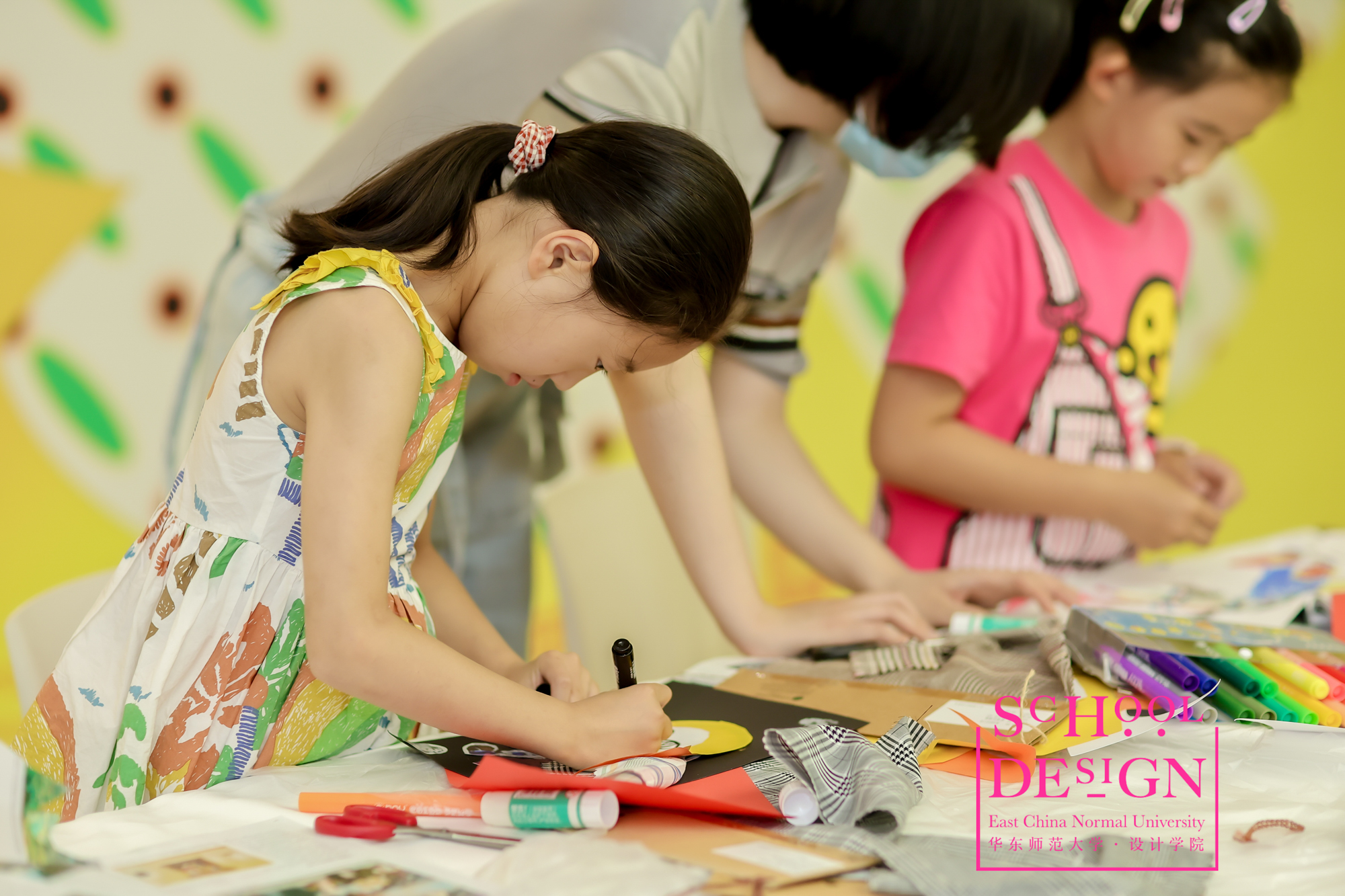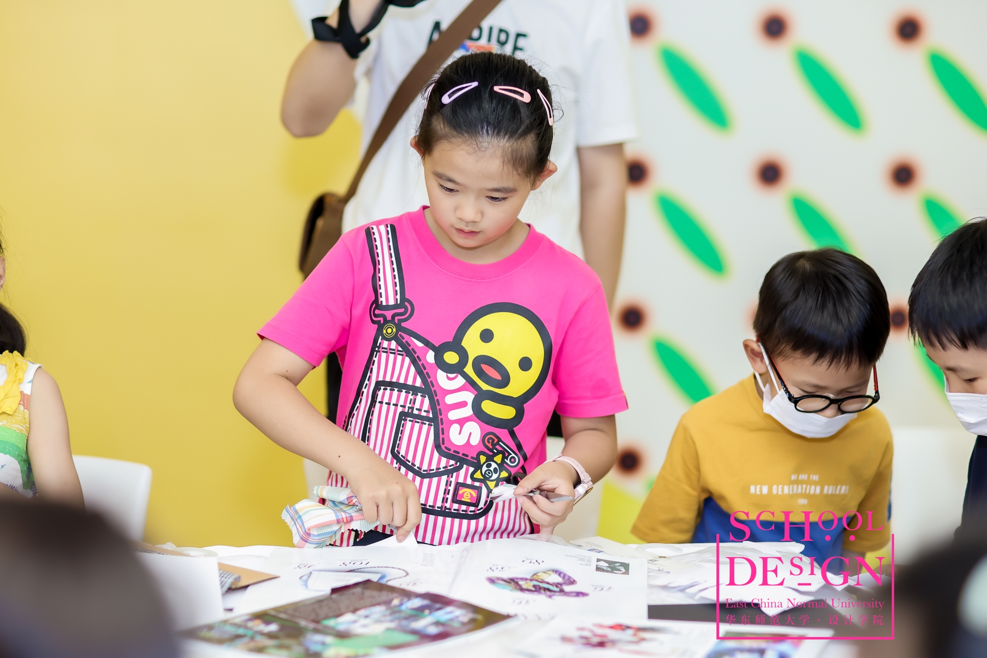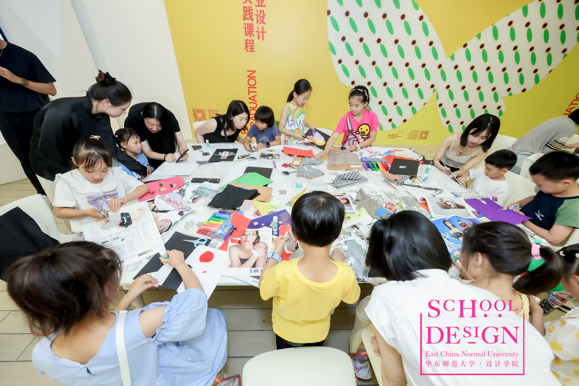 设计学院长期重视少年儿童的艺术教育工作,在本次K11展览的现场由学院插画教学名师陈澜教授带领的教学团队为家长们展现了一场生动有趣的少儿插画教学实践课,引起了小朋友和家长们的强烈兴趣。