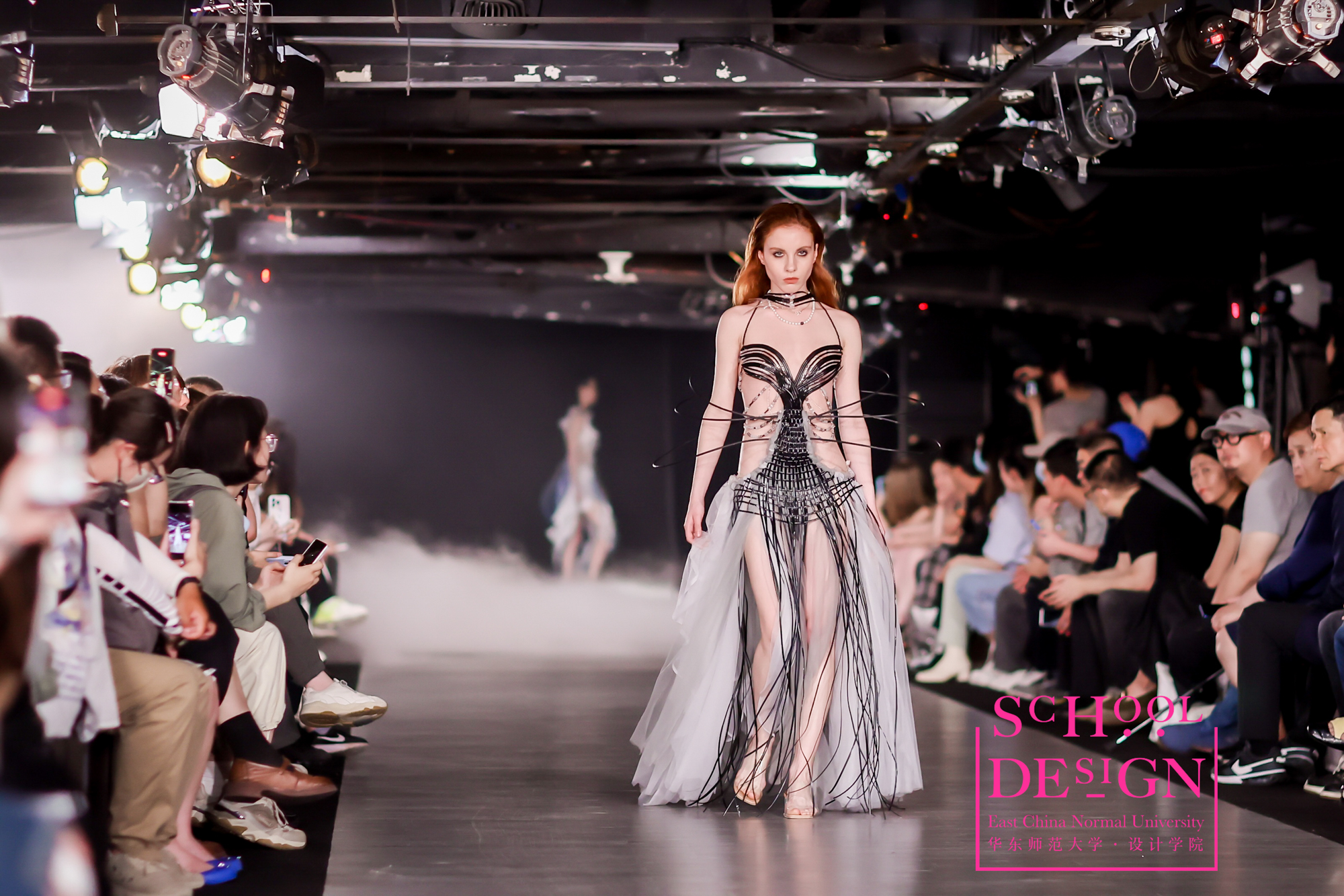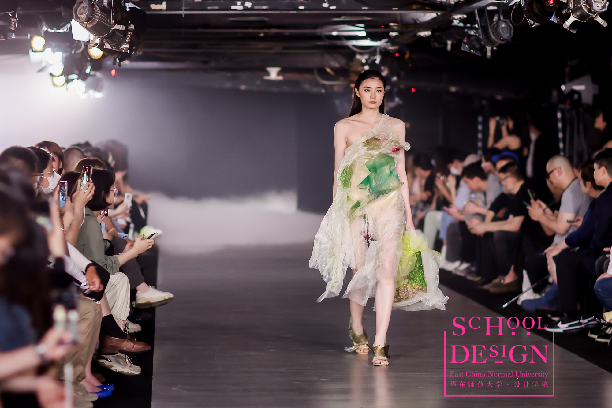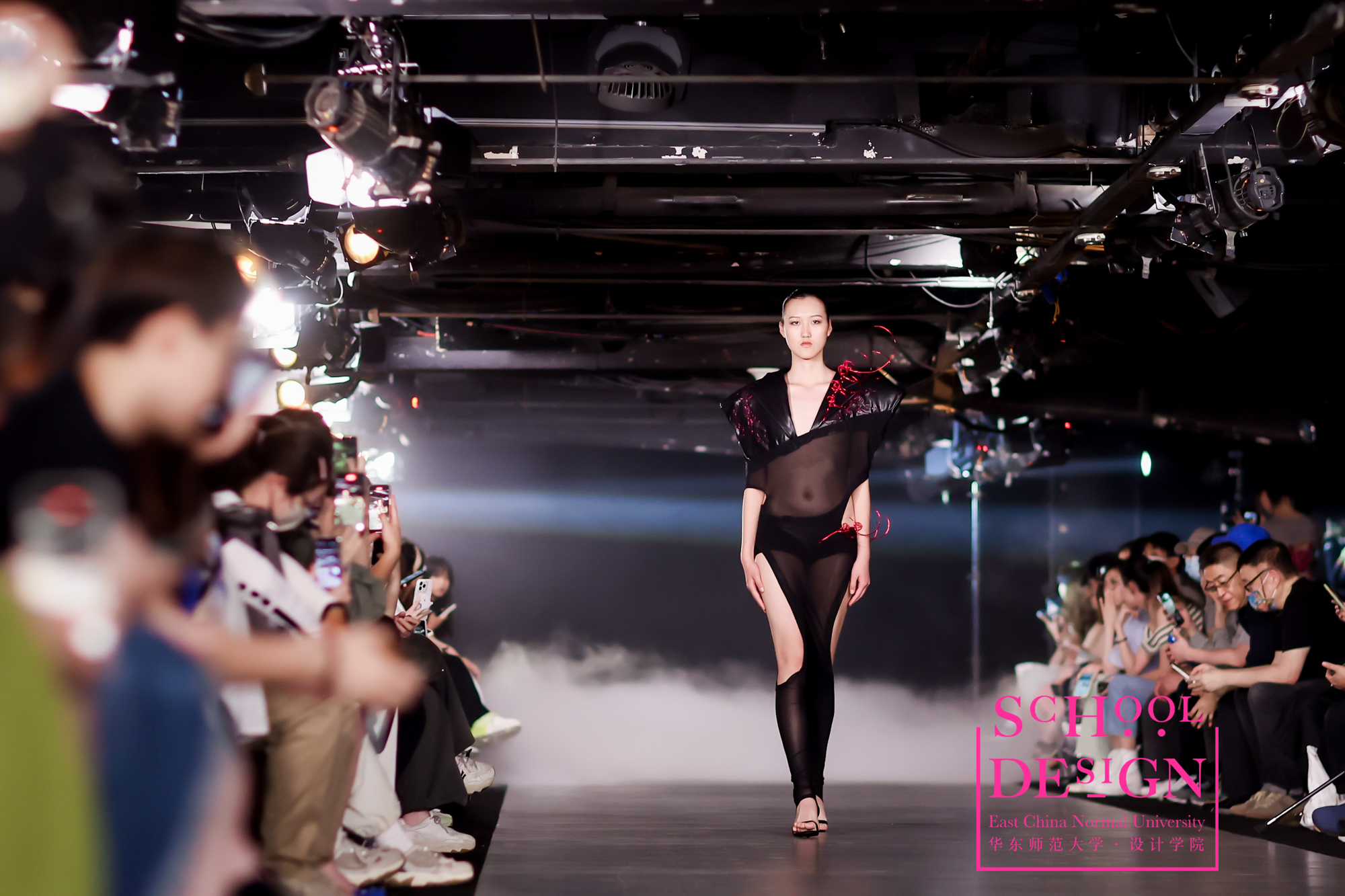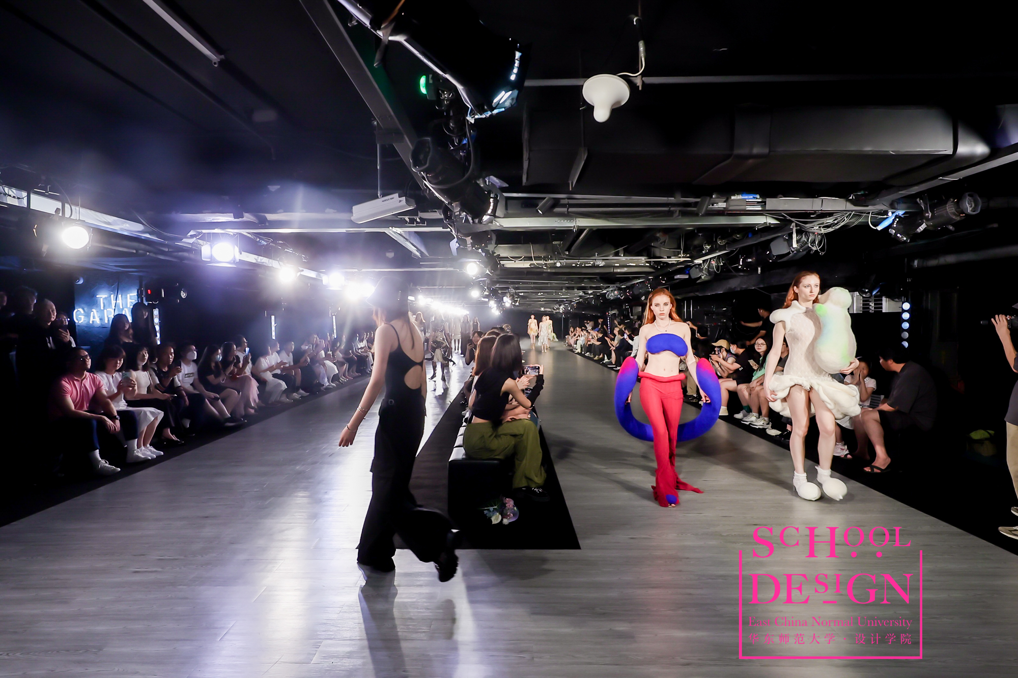 入夜,在K11THE GARAGE,设计学院2023届时尚设计毕业生为观众们呈现了一场精彩纷呈的毕业时装秀,获得了来宾们的满堂喝彩。