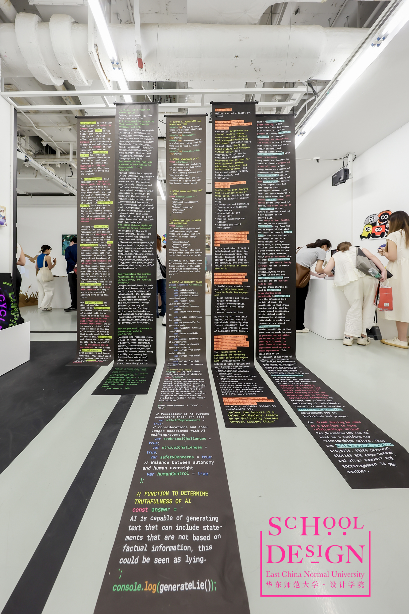 6月11日,华东师大设计学院在chi K11美术馆举办2023年本科毕业设计暨项目实践教学现场演示展。本场展览和活动由2023届本科毕业设计展、毕业时尚秀、项目实践课程现场路演与华东师大设计学院元宇宙数字虚拟学院(一期)现场发布会、少儿插画教学实践现场等五个独立单元同场进行,将教学成果与教学过程现场以及实体学院和数字虚拟学院同时呈现在公众面前,充分展示了学院持续不断的教学改革和实验创新的理念与实践。