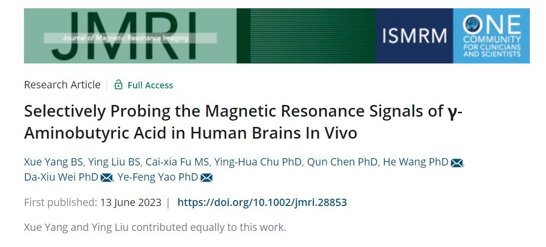 相关研究以“Selectively probing the magnetic resonance signals of γ-aminobutyric acid in human brains in vivo”为题在线发表于著名医学磁共振期刊 Journal of Magnetic Resonance Imaging (DOI: 10.1002/jmri.28853),澳门永利皇宫官网入口为该工作的第一完成单位,澳门永利皇宫官网入口博士生杨雪为第一作者,复旦大学博士生刘颖为共同第一作者。