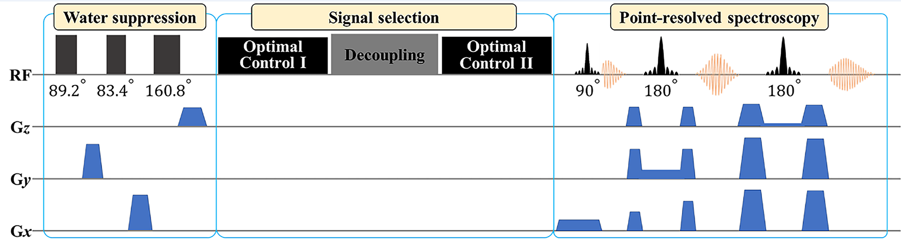 图1. GABA分子靶向磁共振脉冲序列示意图。