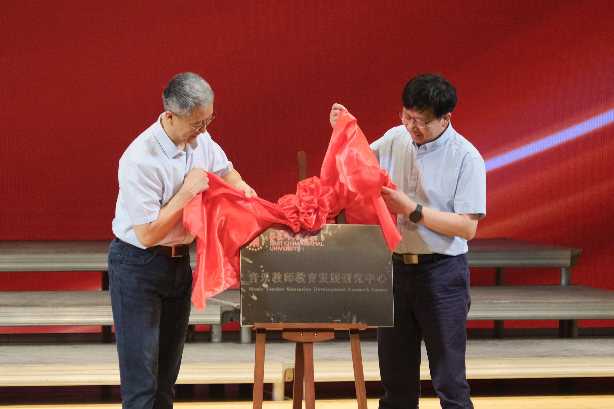 钱旭红与音乐学院名誉院长周海宏一同为“澳门永利皇宫官网入口音乐教师教育发展研究中心”揭牌。中心成立仪式由音乐学院党委书记赵旌旌主持。