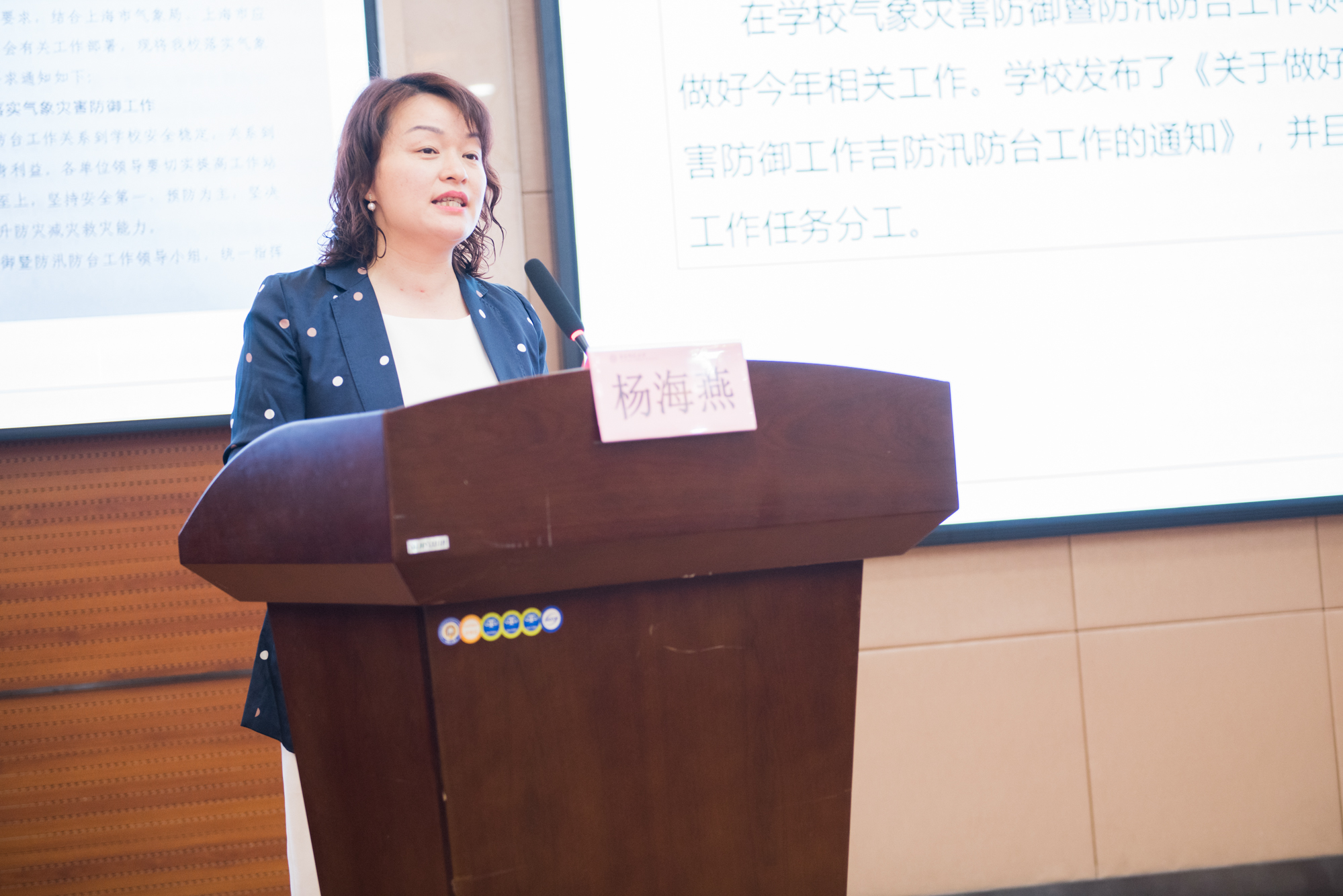会议最后,校气象灾害防御暨防汛防台工作领导小组副组长、后勤保障部部长杨海燕根据上海市气象局、上海市应急管理局、上海市教育委员会有关工作部署,重点从明确岗位责任、落实任务分工、完善应急预案、组织隐患排查、加大宣传力度、做好值班值守和信息沟通等方面对学校2023年气象灾害防御工作进行了部署。