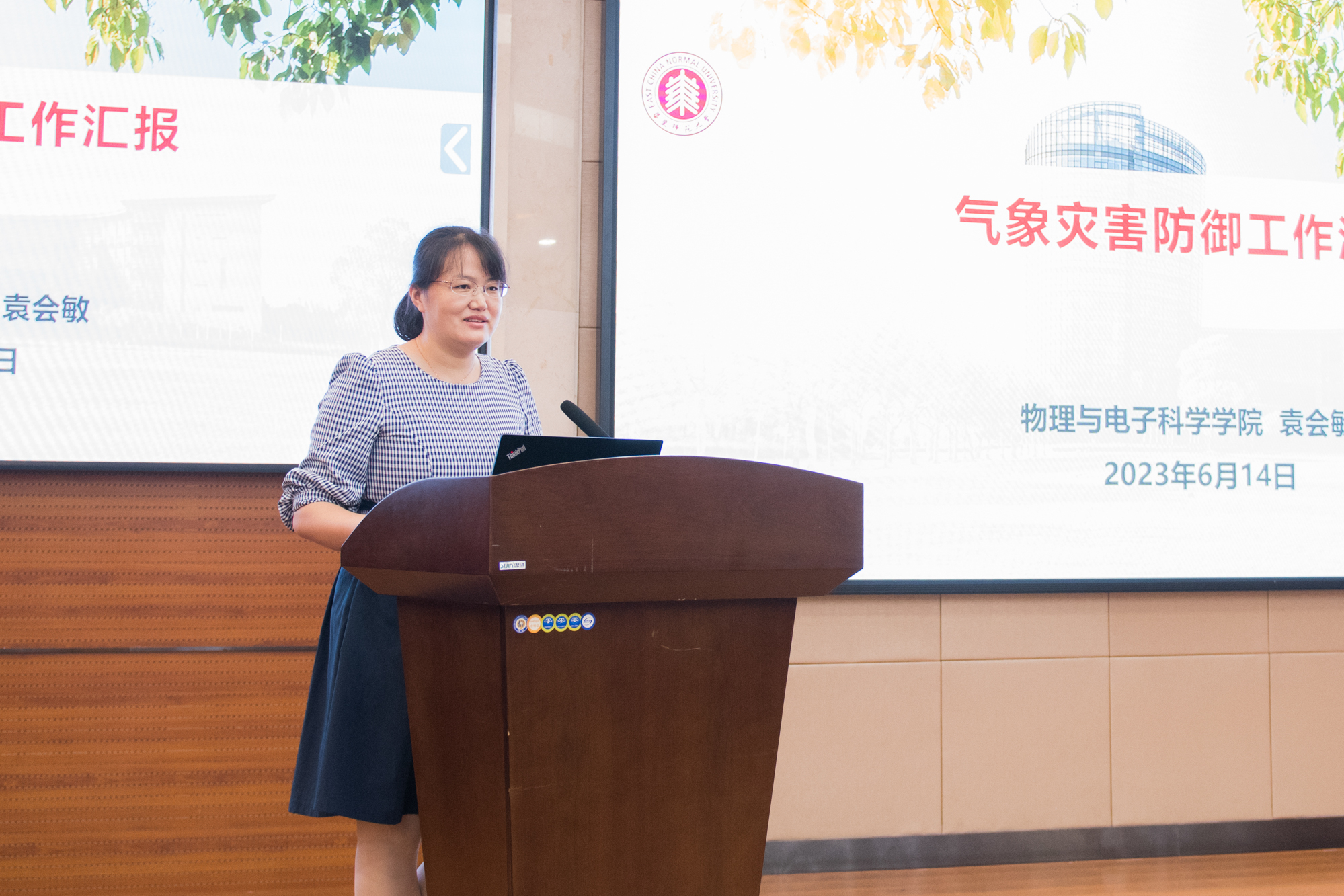 校气象灾害防御暨防汛防台工作领导小组副组长、党委统战部部长、学校办主任张惠虹作工作总结
