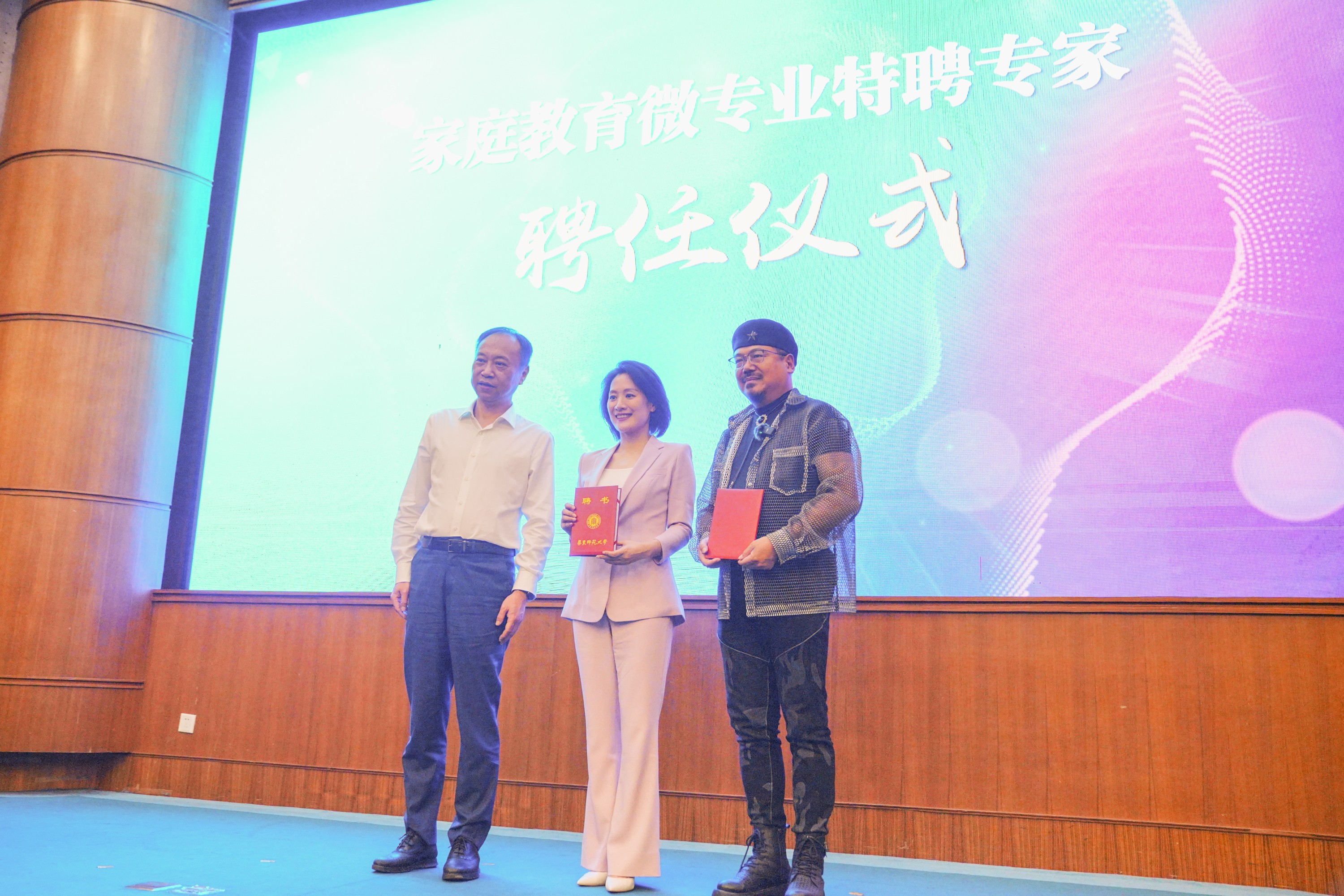微专业的建设得到了校内外专业人士的广泛支持。论坛上,戴立益为贺岭峰、何婕颁发华东师大家庭教育微专业特聘专家证书。