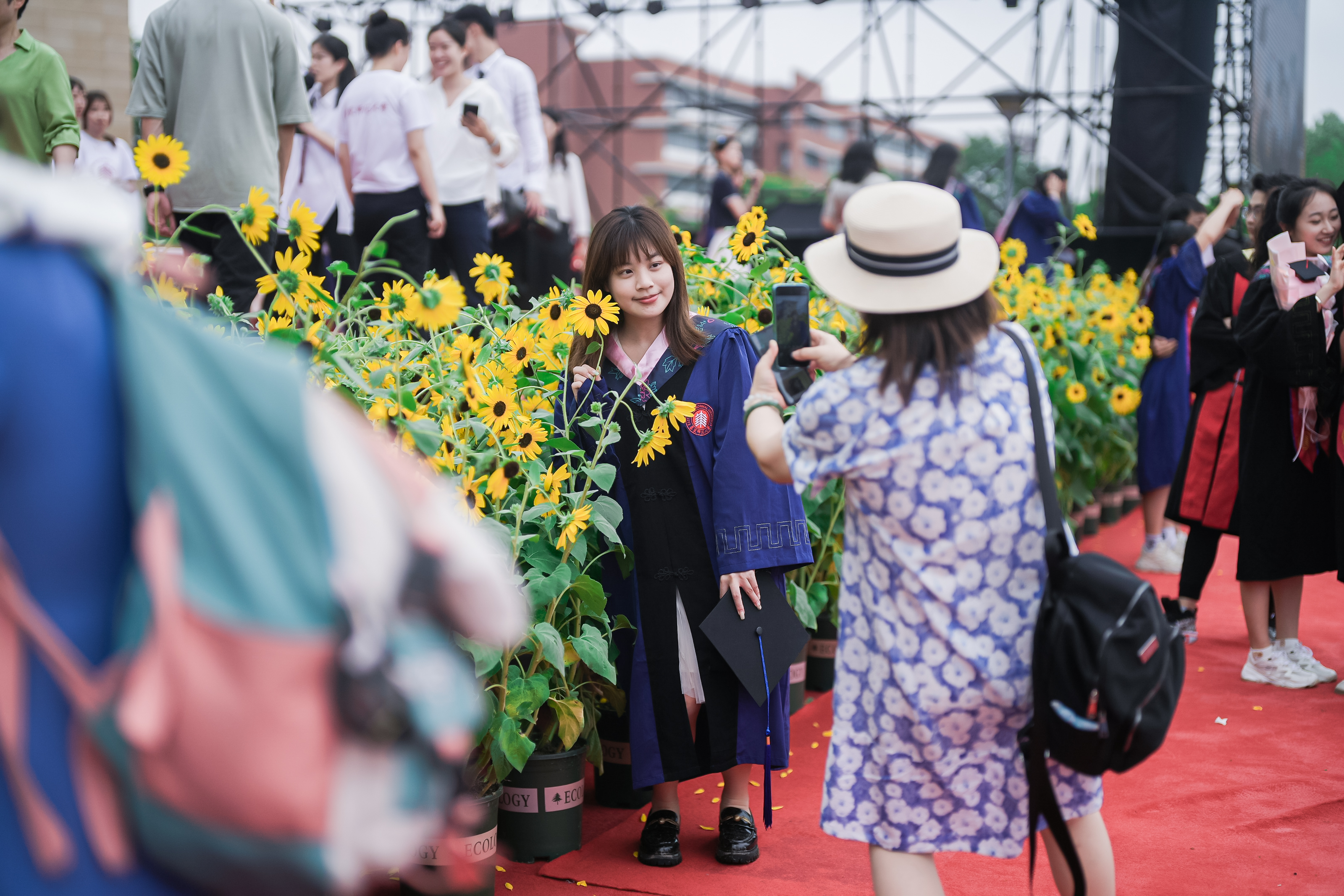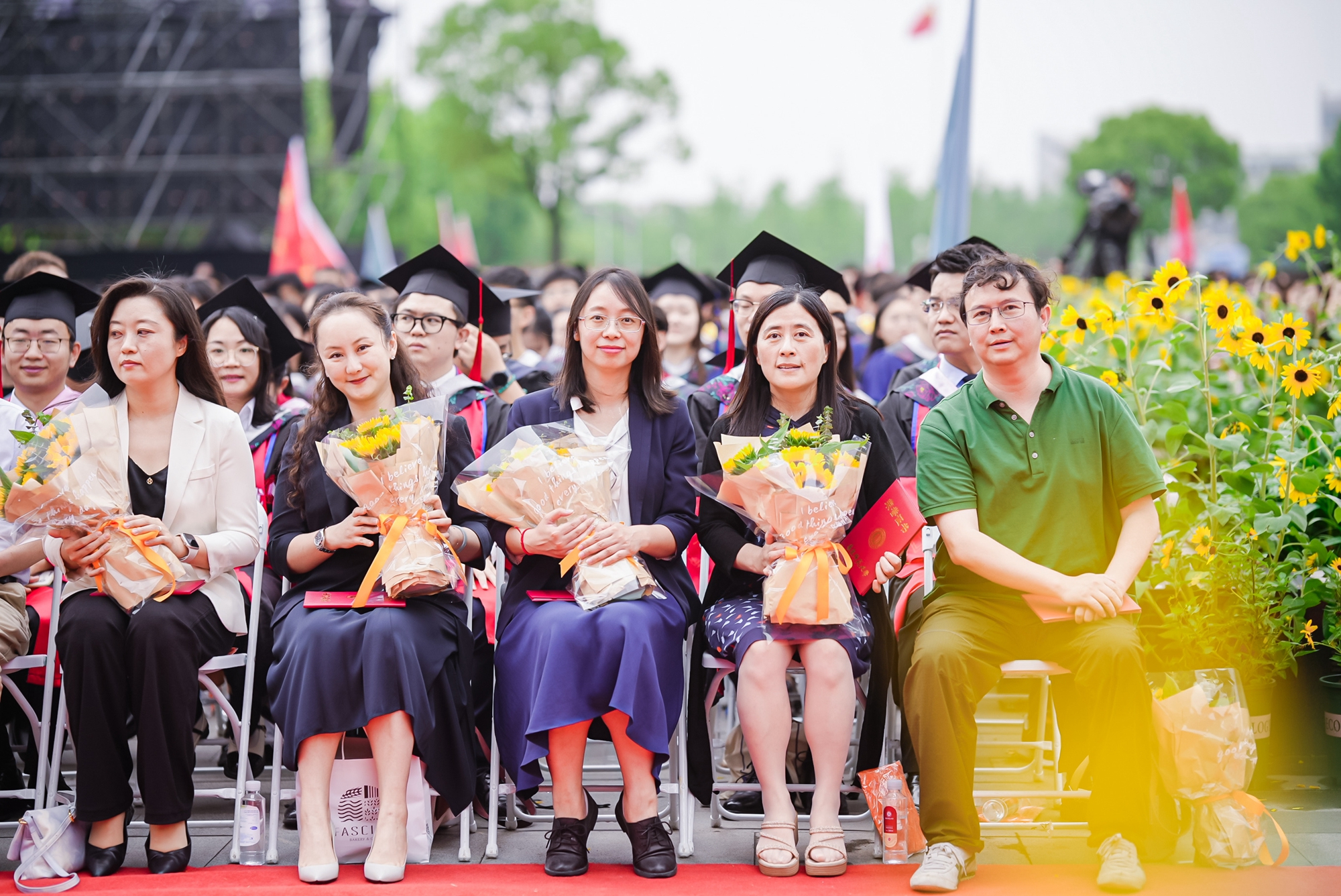 今天毕业典礼上用的花束和盆栽,即是自家的毕业花向日葵,愿2023届毕业生带着最美的品质出发,扎根大地,逐光前行。