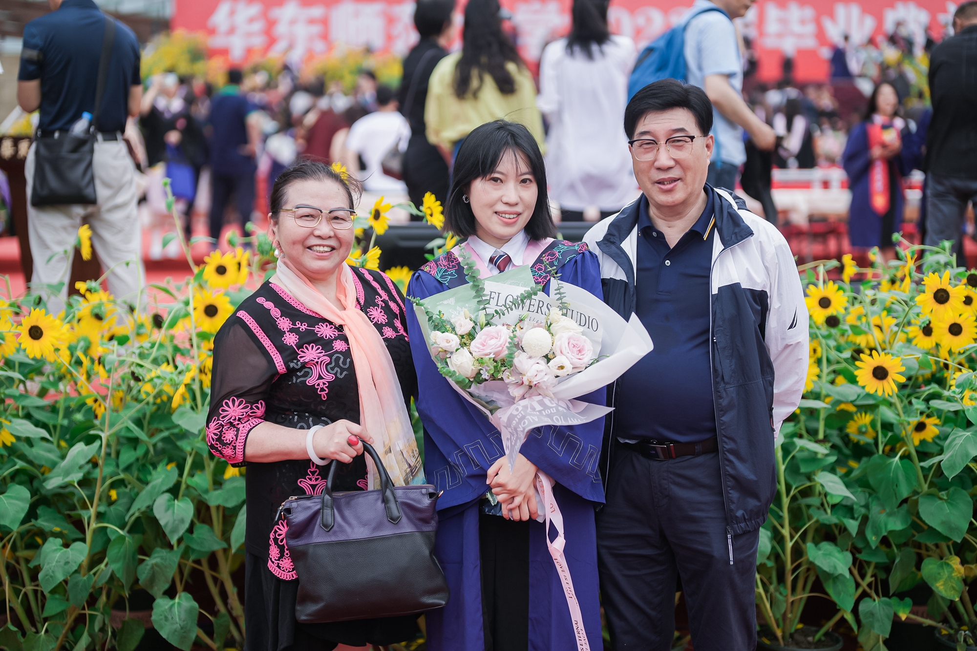 从2014年起,华东师大为每一届毕业生种植一片六月盛开、寓意美好的“毕业花”。今年,学校在两校区种植了面积约1600㎡的24000多株经学生投票选出的毕业花——象征着希望的向日葵。
