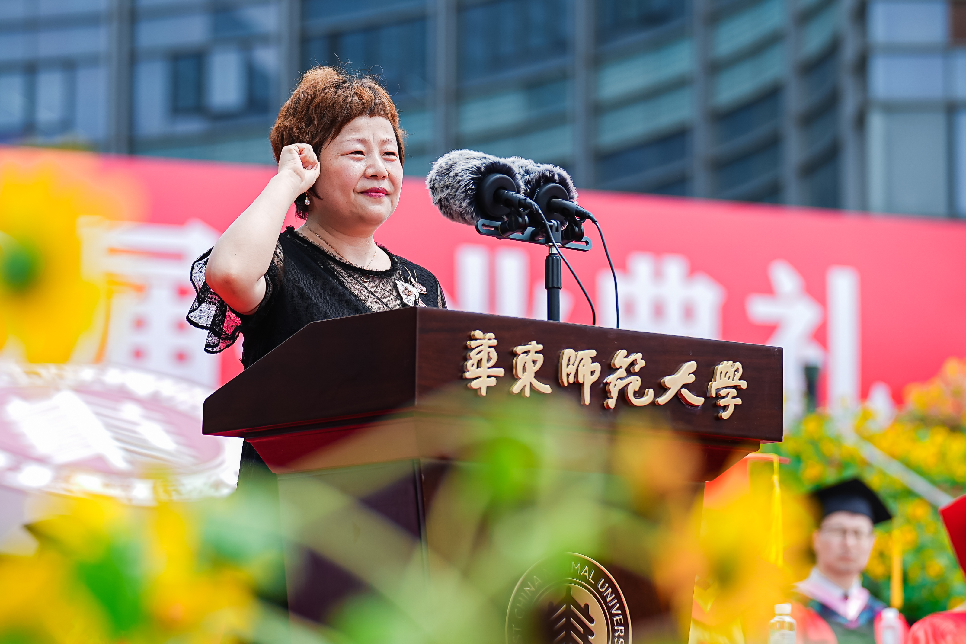 毕业典礼上还播放了为毕业生特别制作的视频《一路生花——卓越·启航,献给华东师大2023届毕业生》。