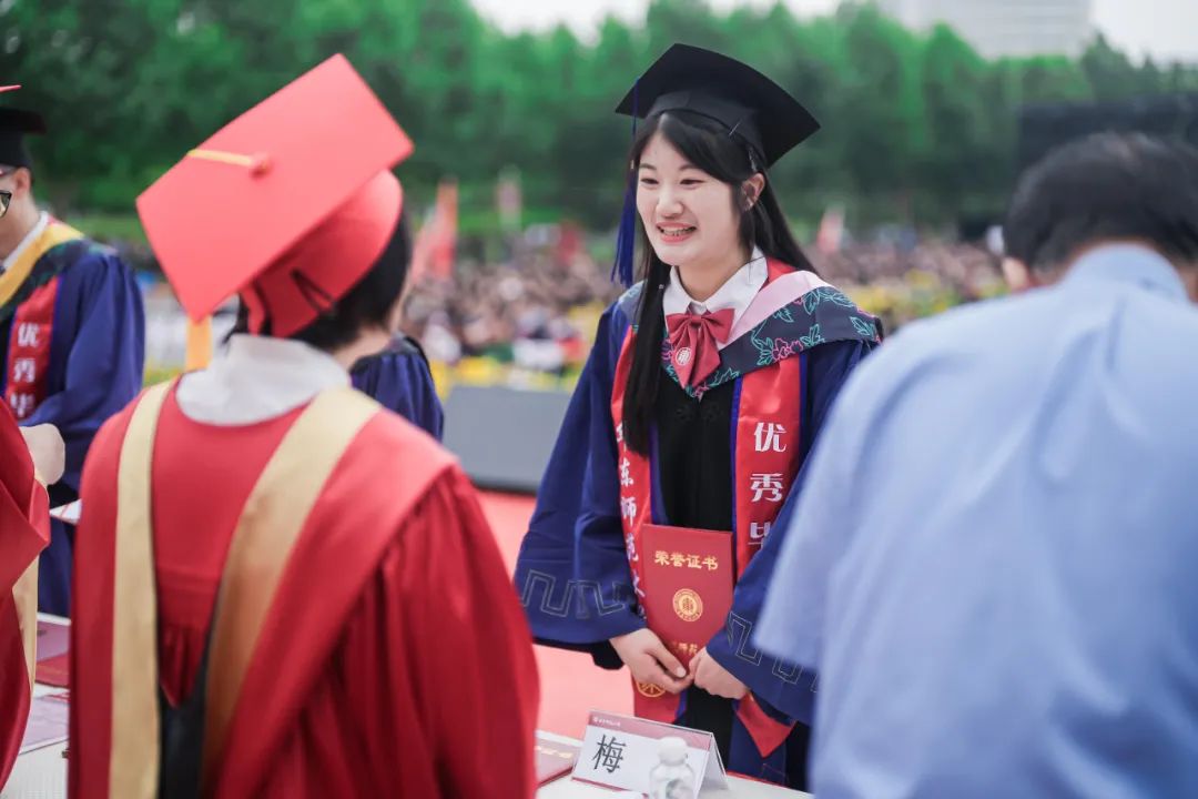 毕业典礼上,校领导与嘉宾为2023届校友联络大使颁发聘书。华东师大聘任219位毕业生为2023届校友联络大使,希望通过校友联络大使,建立校友与学校、校友与校友之间更加广泛而密切的联系,更好地回应校友的关切,服务学校的发展。