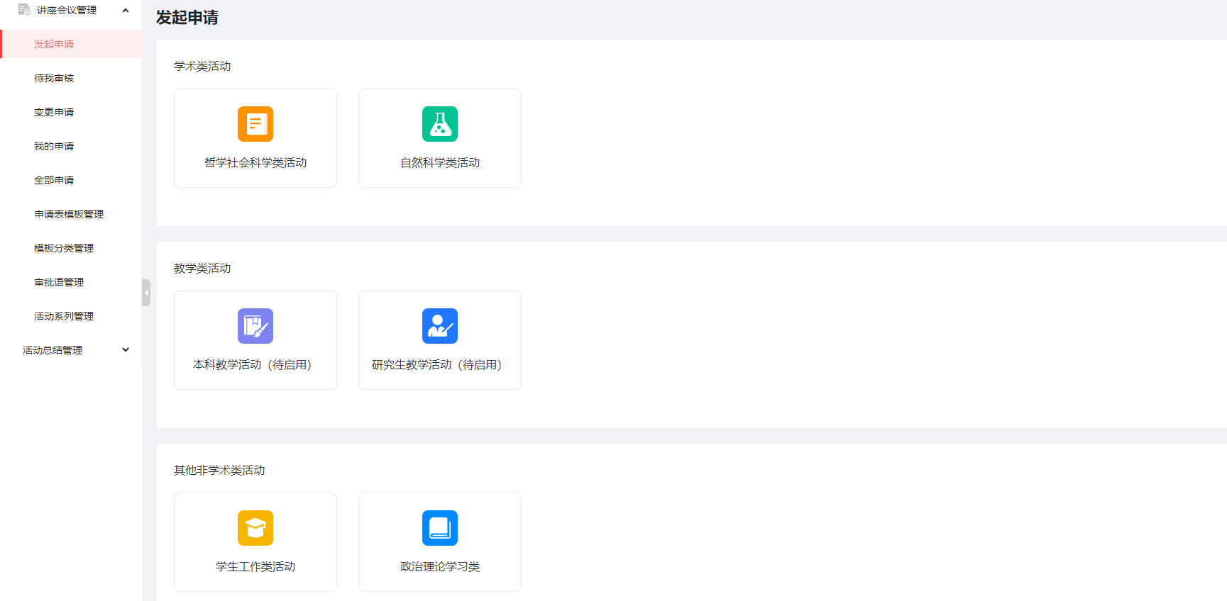 讲座会议管理系统申请界面