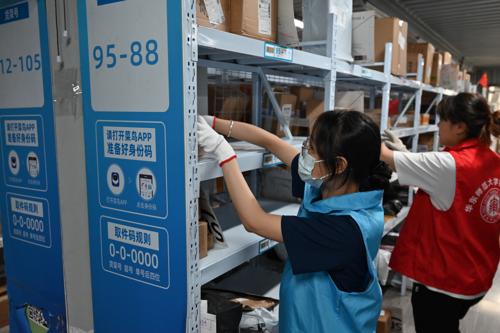 通信与电子工程学院的韦钰同学即将赴广西省担任选调生,在菜鸟驿站,她不停地蹲下举高,在现场工作人员的指导下,逐渐熟悉了包裹上架和扫描入库等工作的要点,这些看似简单的操作,实则需要很多的细心和技巧。这次的劳动实践,让她深刻体会到了便利校园生活背后是无数劳动者的辛勤付出。